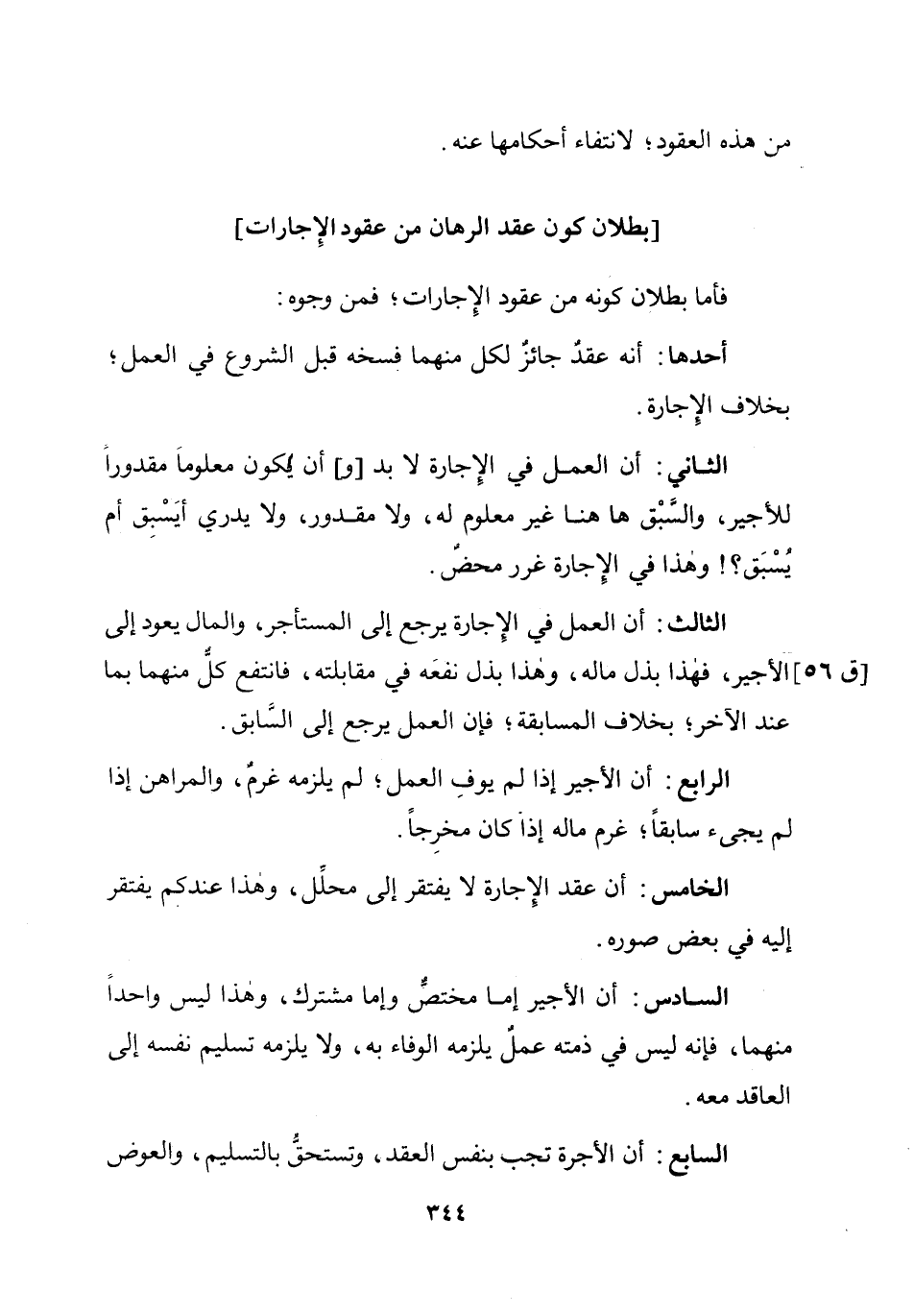 من هَذِه الْعُقُود لانْتِفَاء أَحْكَامهَا عَنهُ (بطلَان كَون عقد الرِّهَان من عُقُود الْإِجَارَات)