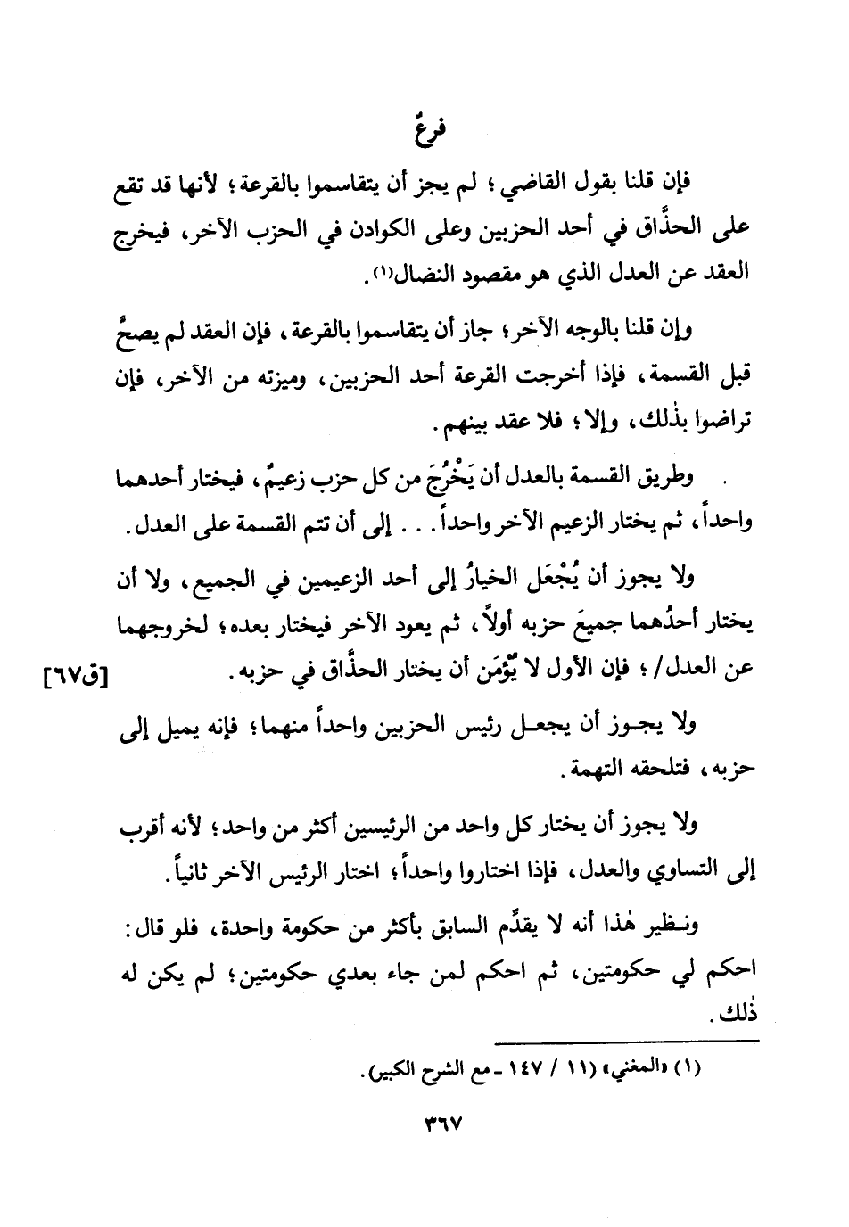 وَلَا يجوز أَن يخْتَار كل وَاحِد من الرئيسين أَكثر من وَاحِد لِأَنَّهُ أقرب إِلَى التَّسَاوِي وَالْعدْل فَإِذا اخْتَارُوا وَاحِدًا اخْتَار الرئيس الآخر ثَانِيًا