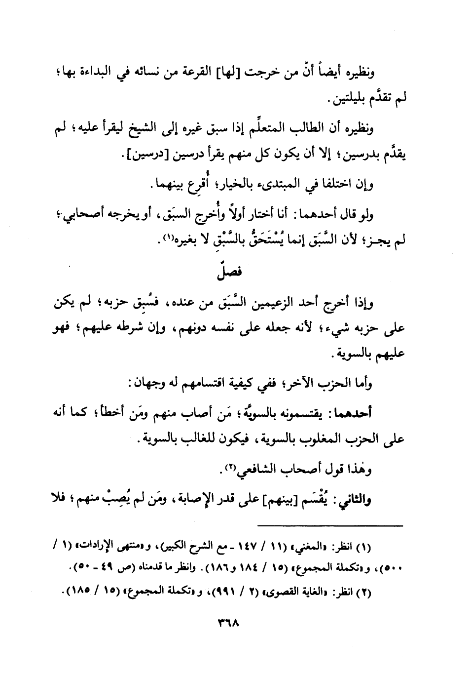 وَنَظِيره أَن الطَّالِب المتعلم إِذا سبق غَيره إِلَى الشَّيْخ ليقْرَأ عَلَيْهِ لم يقدم بدرسين إِلَّا أَن يكون كل مِنْهُم يقْرَأ درسين درسين