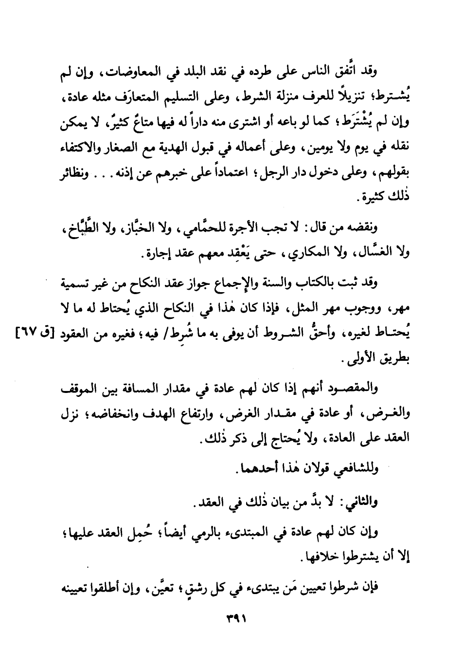 وَقد ثَبت بِالْكتاب وَالسّنة وَالْإِجْمَاع جَوَاز عقد النِّكَاح من غير تَسْمِيَة مهر وَوُجُوب مهر الْمثل فَإِذا كَانَ هَذَا فِي النِّكَاح الَّذِي يحْتَاط لَهُ مَا لَا يحْتَاط لغيره وأحق الشُّرُوط أَن يُوفى بِهِ مَا شَرط فِيهِ فَغَيره من الْعُقُود بطرِيق الأولى