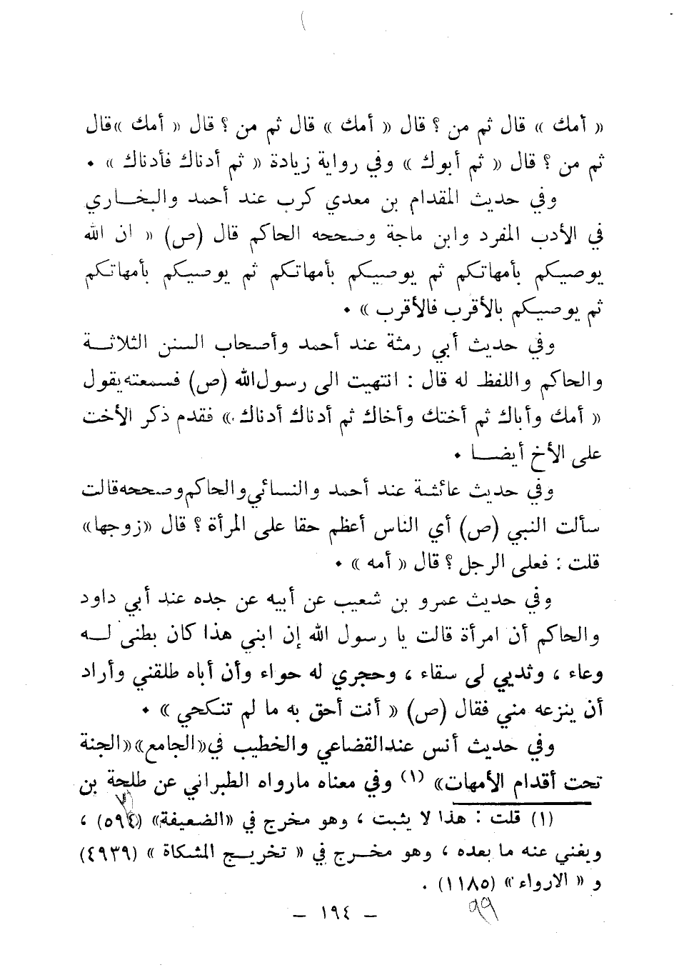 عن النبي A قال: " الجنة تحت أقدام الأمهات "