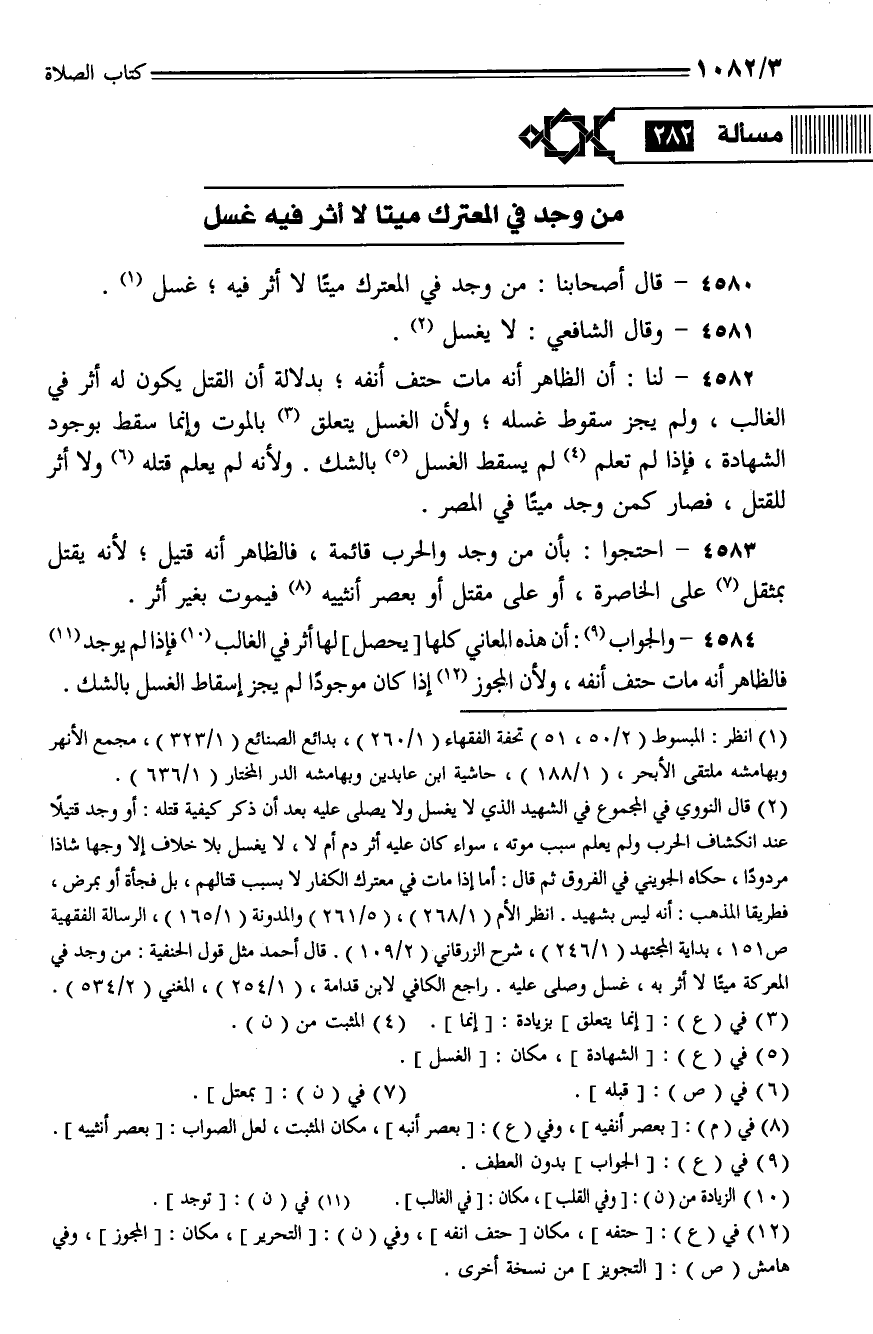 4584 - والجواب: أن هذه المعاني كلها [يحصل] لها أثر في الغالب فإذا لم يوجد فالظاهر أنه مات حتف أنفه، ولأن المجوز إذا كان موجودا لم يجز إسقاط الغسل بالشك.