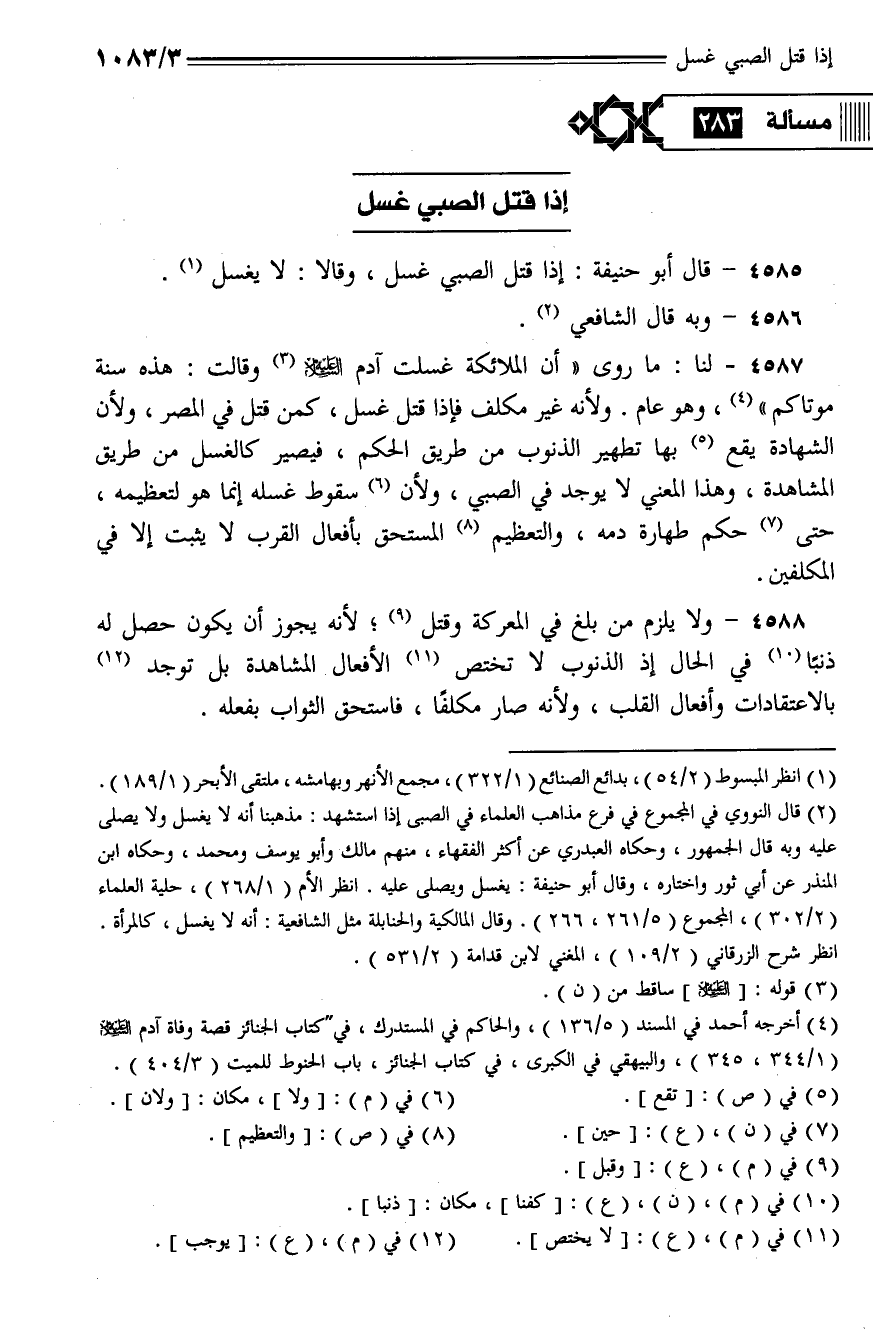 4585 - قال أبو حنيفة: إذا قتل الصبي غسل، وقالا: لا يغسل.