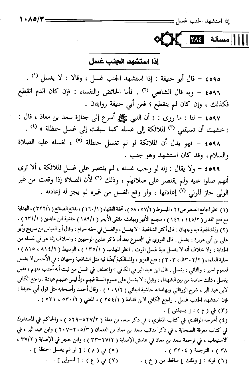 4598 - فهو يدل أن الملائكة لو لم تغسل حنظلة، لغسله عليه الصلاة والسلام، وقد كان استشهد وهو جنب.