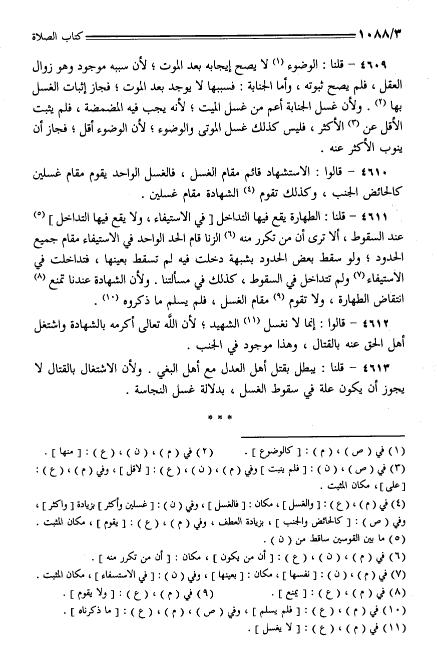 4611 - قلنا: الطهارة يقع فيها التداخل [في الاستيفاء، ولا يقع فيها التداخل] عند السقوط، ألا ترى أن من تكرر منه الزنا قام الحد الواحد في الاستيفاء مقام جميع الحدود؛ ولو سقط بعض الحدود بشبهة دخلت فيه لم تسقط بعينها، فتداخلت في الاستيفاء ولم تتداخل في السقوط، كذلك في مسألتنا. ولأن الشهادة عندنا تمنع انتقاض الطهارة، ولا تقوم مقام الغسل، فلم يسلم ما ذكروه.