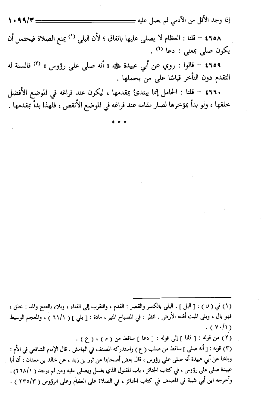 4660 - قلنا: الحامل إنما يبتدئ بمقدمها، ليكون عند فراغه في الموضع الأفضل خلفها، ولو بدأ بمؤخرها لصار مقامه عند فراغه في الموضع الأنقص، فلهذا بدأ بمقدمها.