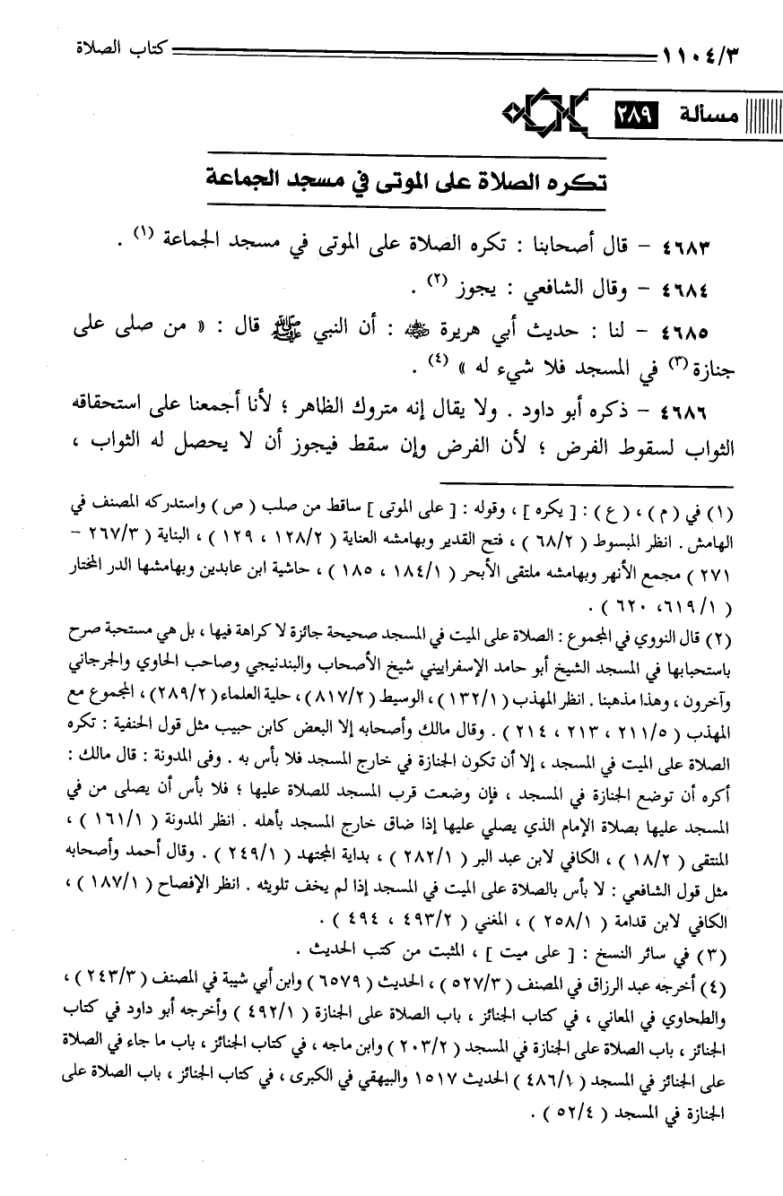 4683 - قال أصحابنا: تكره الصلاة على الموتى في مسجد الجماعة.