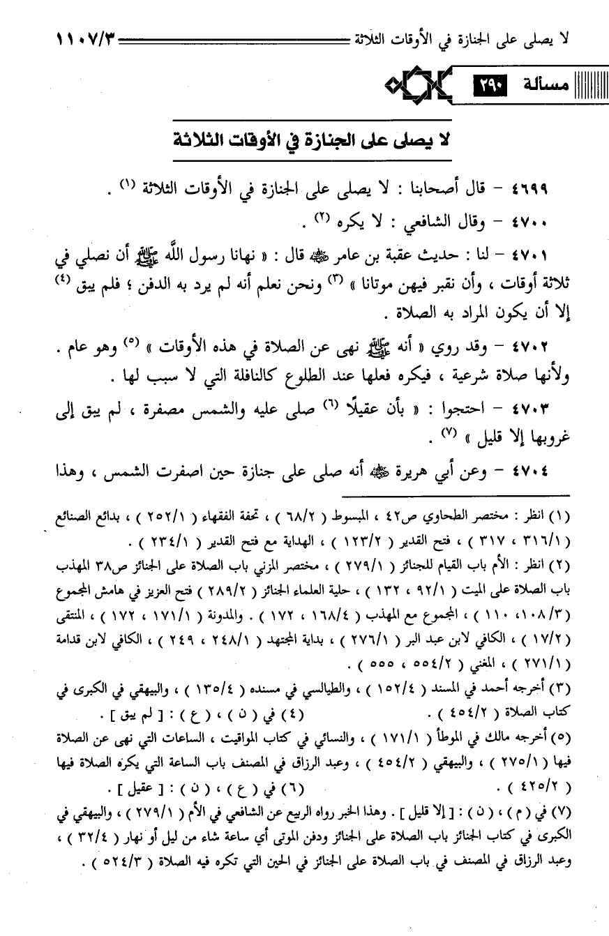 4699 - قال أصحابنا: لا يصلى على الجنازة في الأوقات الثلاثة.