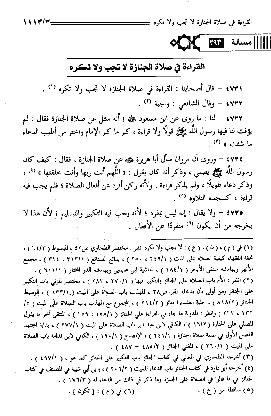 4731 - قال أصحابنا: القراءة في صلاة الجنازة لا تجب ولا تكره.