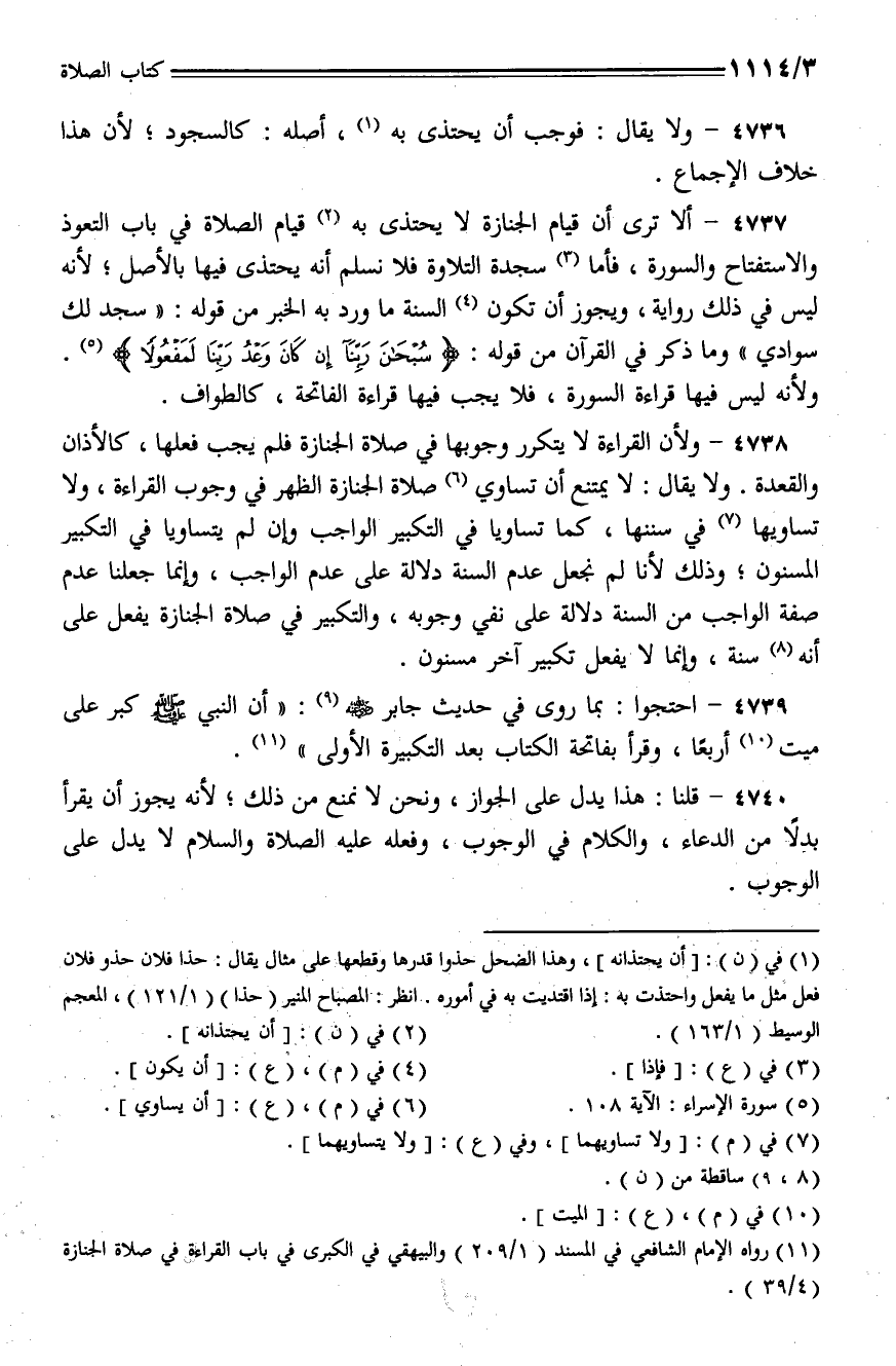 4736 - ولا يقال: فوجب أن يحتذى به، أصله: كالسجود؛ لأن هذا خلاف الإجماع.