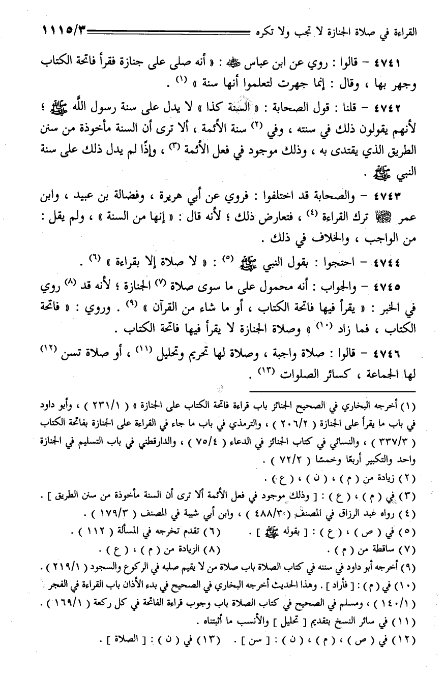 4741 - قالوا: روي عن ابن عباس - رضي الله عنه -: (أنه صلى على جنازة فقرأ فاتحة الكتاب وجهر بها، وقال: إنما جهرت لتعلموا أنها سنة).