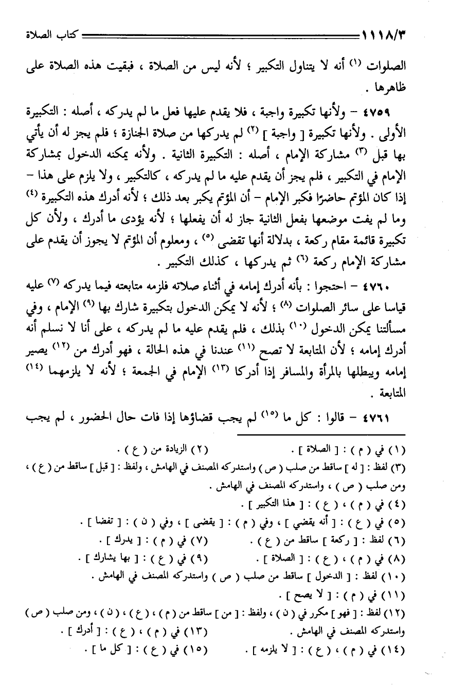 4761 - قالوا: كل ما لم يجب قضاؤها إذا فات حال الحضور، لم يجب