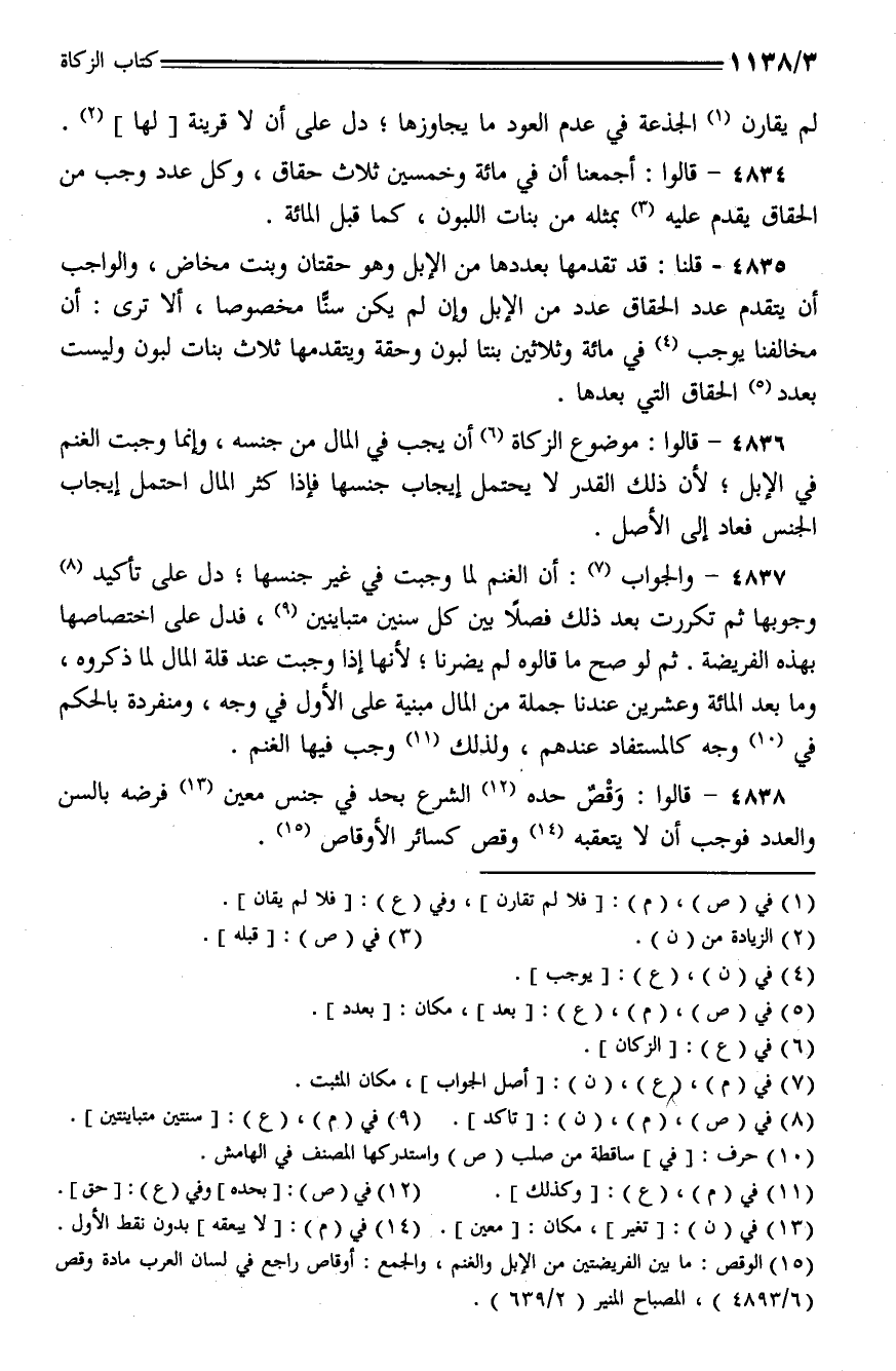 4834 - قالوا: أجمعنا أن في مائة وخمسين ثلاث حقاق، وكل عدد وجب من الحقاق يقدم عليه بمثله من بنات اللبون، كما قبل المائة.