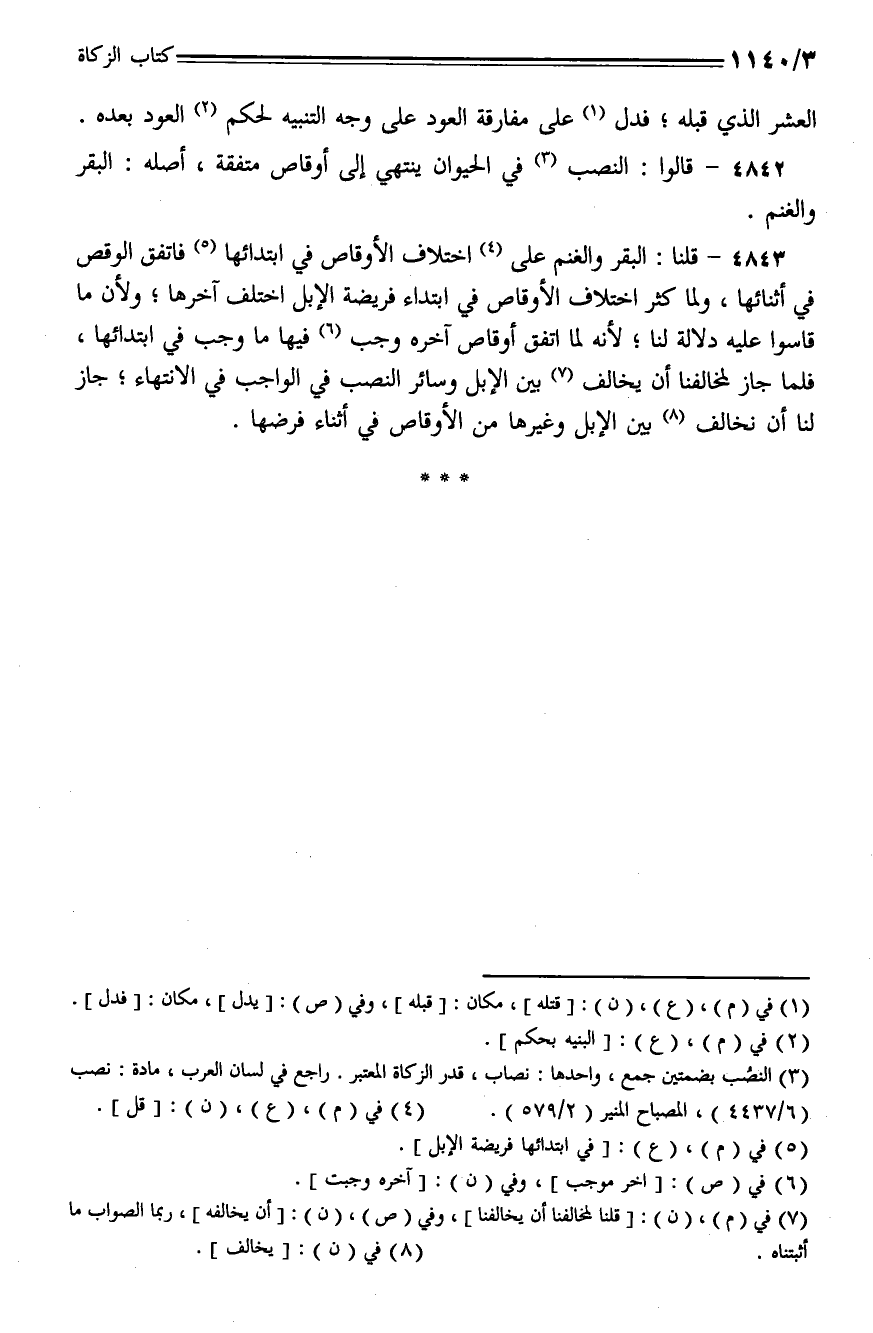 4842 - قالوا: النصب في الحيوان ينتهي إلى أوقاص متفقة، أصله: البقر والغنم.