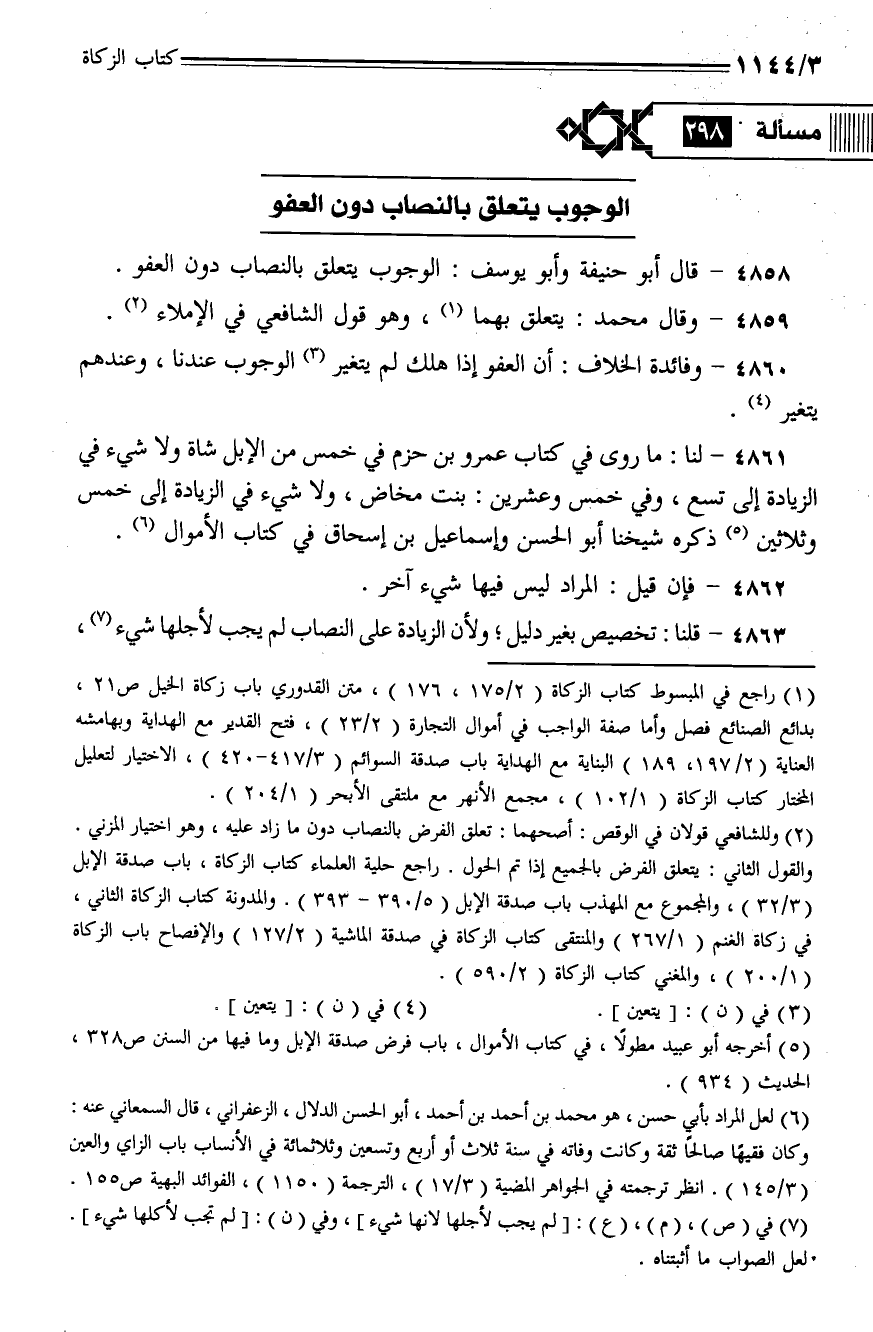 4858 - قال أبو حنيفة وأبو يوسف: الوجوب يتعلق بالنصاب دون العفو.