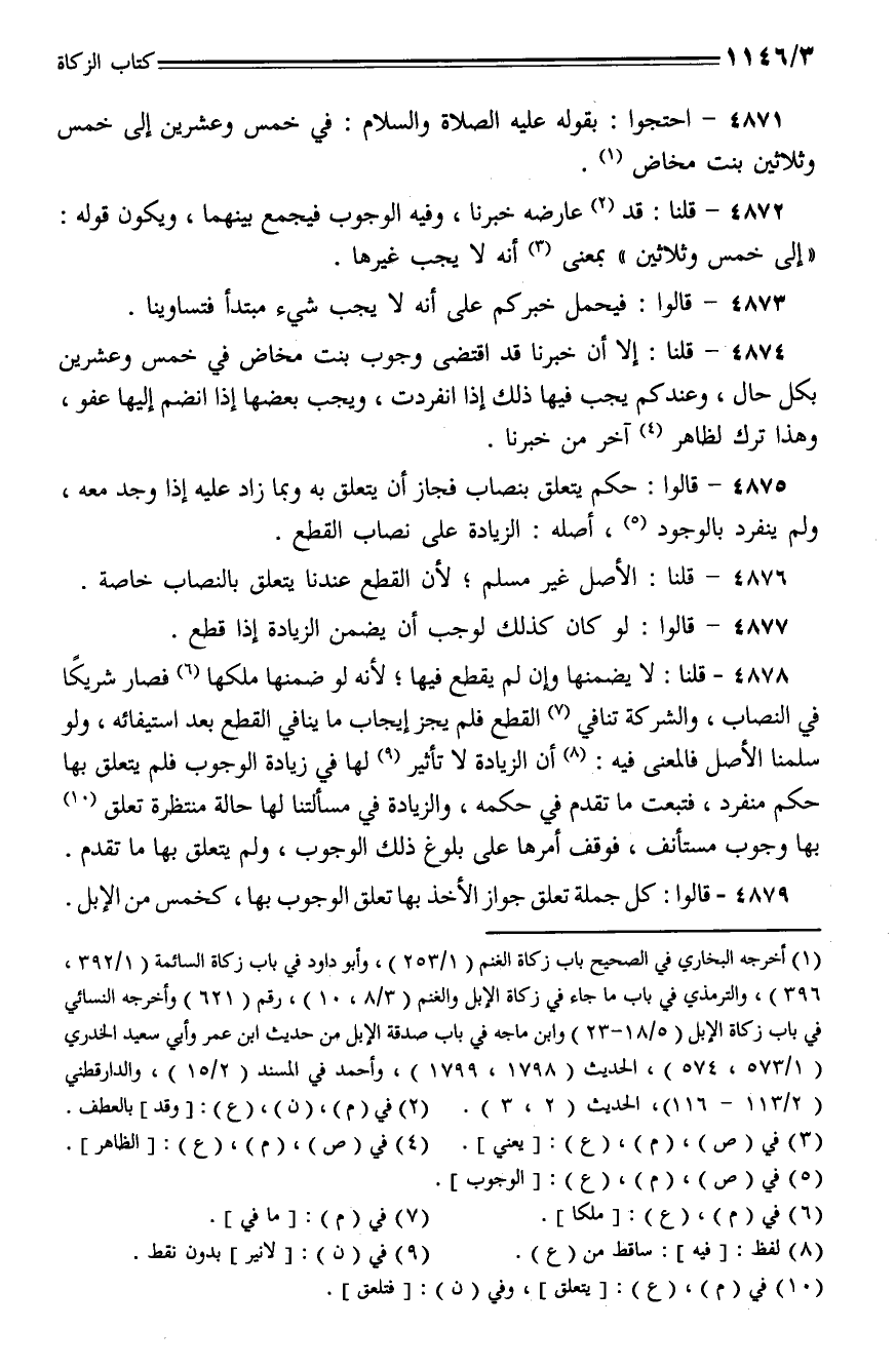 4871 - احتجوا: بقوله عليه الصلاة والسلام: في خمس وعشرين إلى خمس وثلاثين بنت مخاض.