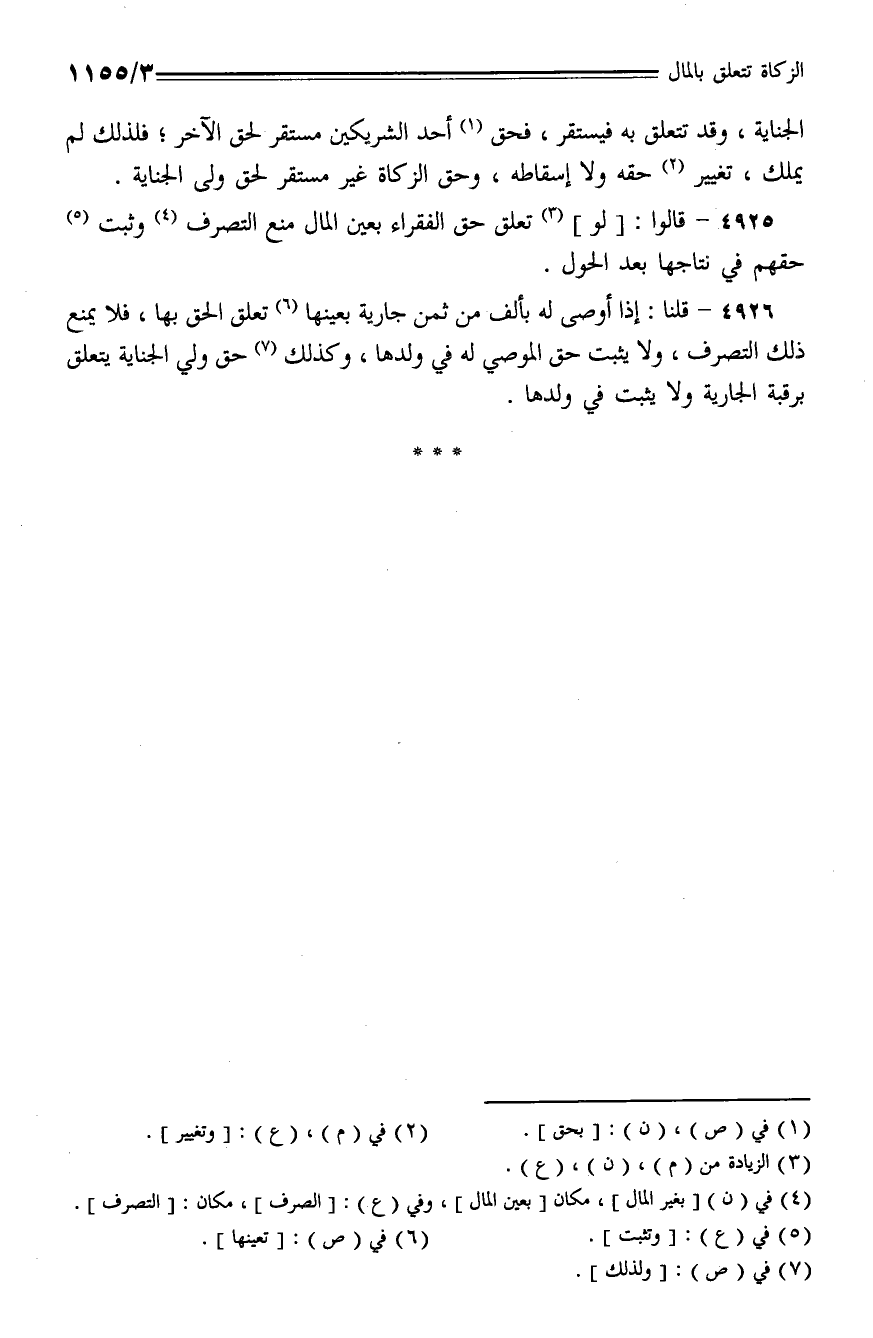 4925 - قالوا: [لو] تعلق حق الفقراء بعين المال منع التصرف وثبت حقهم في نتاجها بعد الحول.
