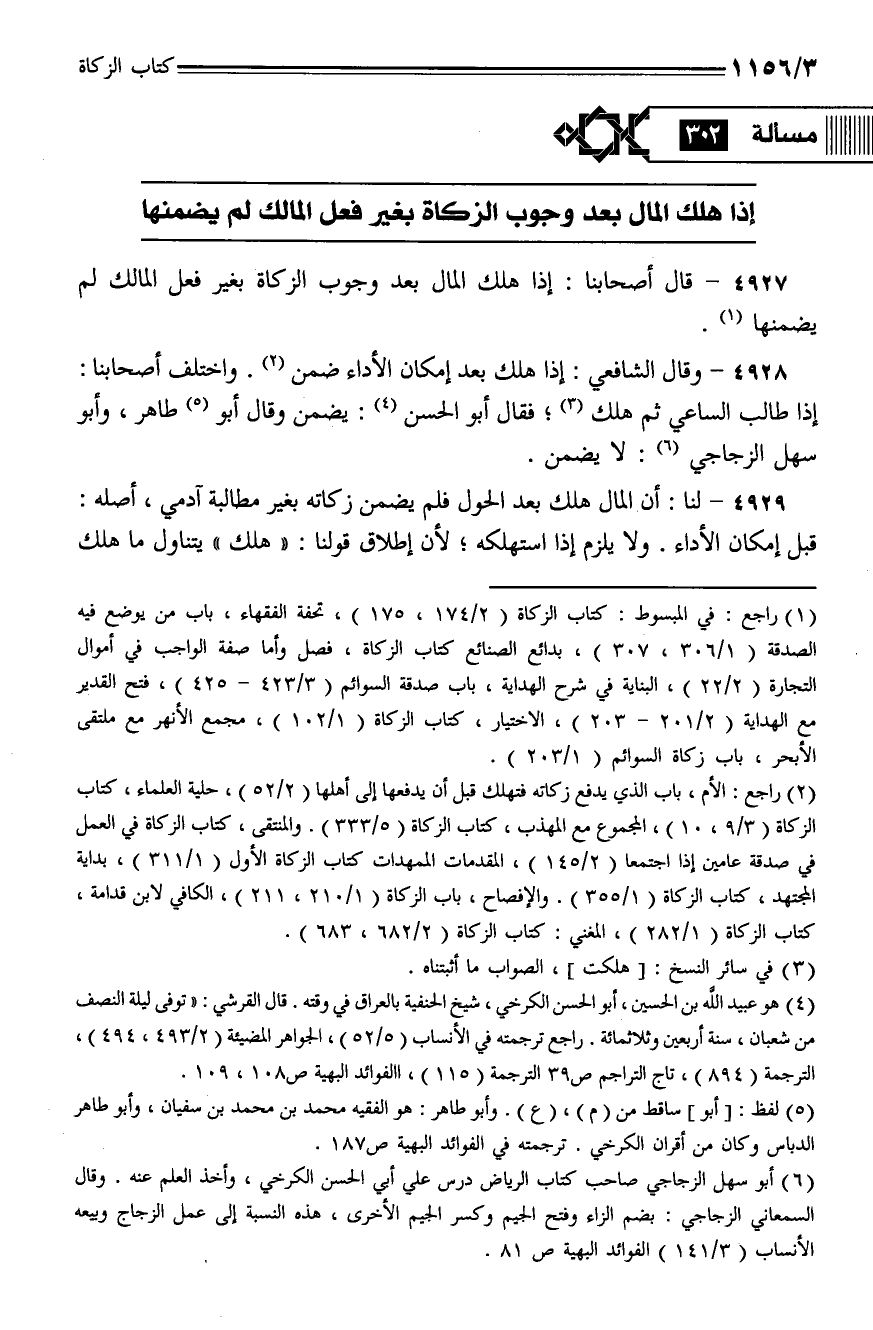 4929 - لنا: أن المال هلك بعد الحول فلم يضمن زكاته بغير مطالبة آدمي، أصله: قبل إمكان الأداء. ولا يلزم إذا استهلكه؛ لأن إطلاق قولنا: (هلك) يتناول ما هلك
