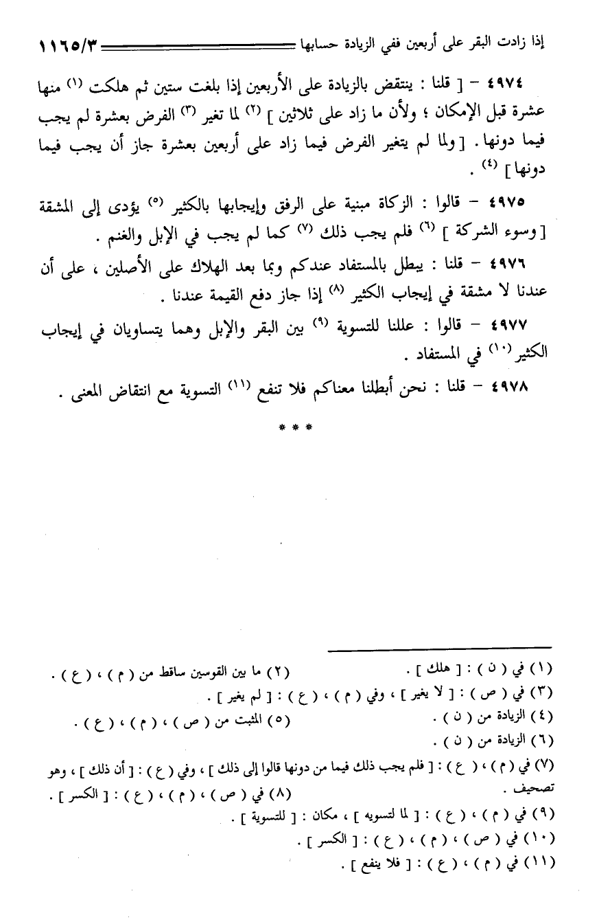 4977 - قالوا: عللنا للتسوية بين البقر والإبل وهما يتساويان في إيجاب الكثير في المستفاد.