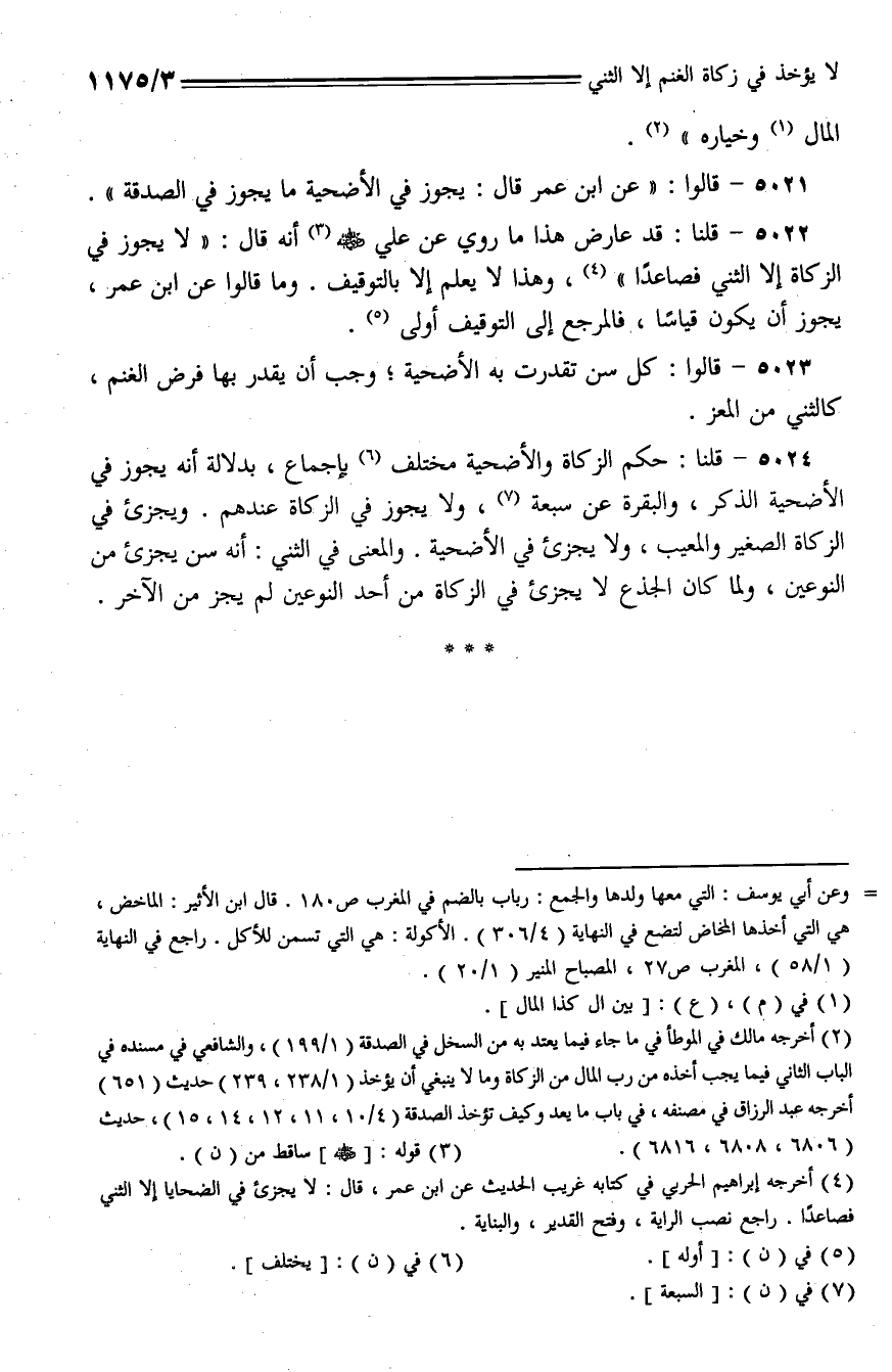 5023 - قالوا: كل سن تقدرت به الأضحية؛ وجب أن يقدر بها فرض الغنم، كالثني من المعز.