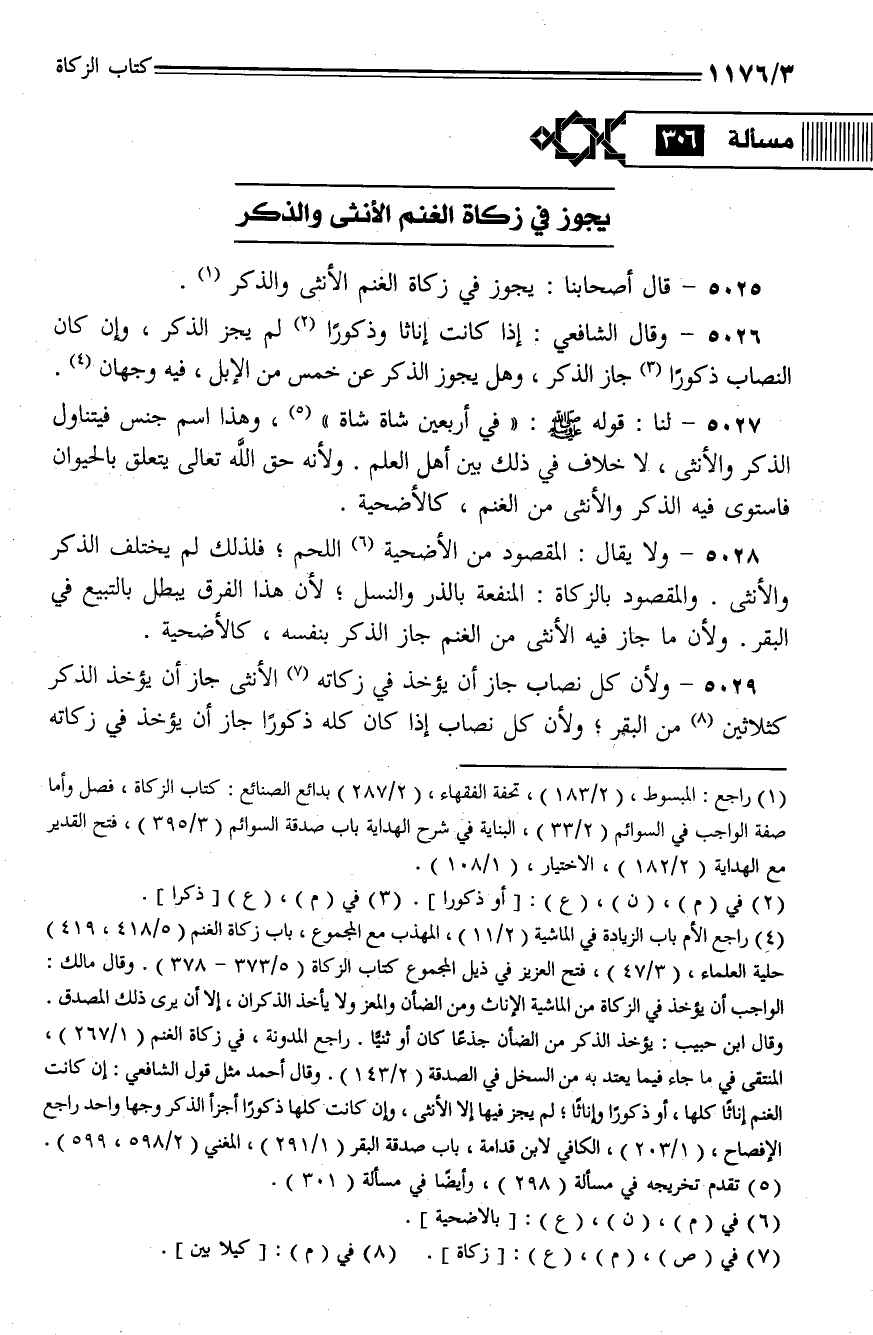 5029 - ولأن كل نصاب جاز أن يؤخذ في زكاته الأنثى جاز أن يؤخذ الذكر كثلاثين من البقر؛ ولأن كل نصاب إذا كان كله ذكورا جاز أن يؤخذ في زكاته