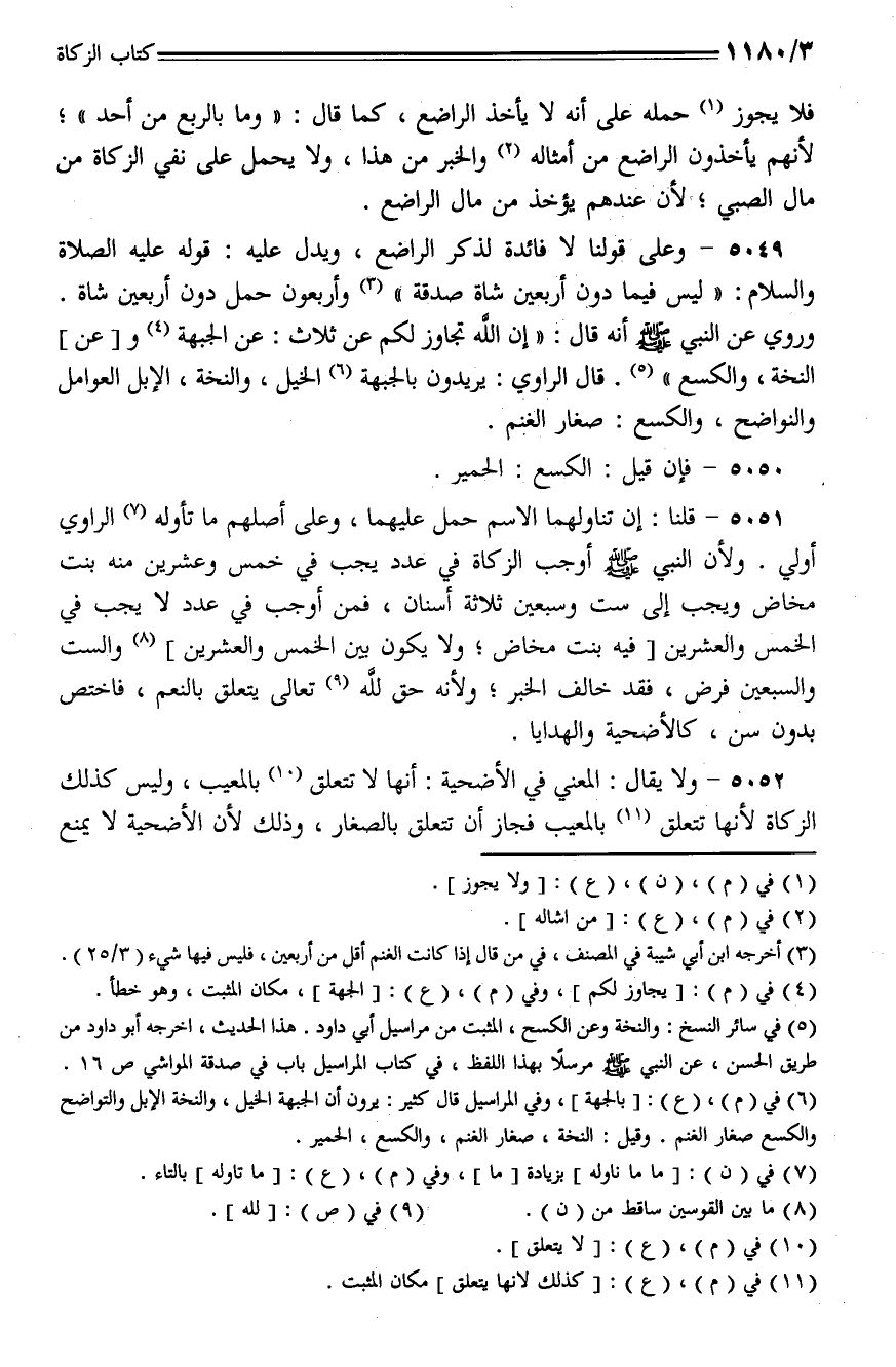 5049 - وعلى قولنا لا فائدة لذكر الراضع، ويدل عليه: قوله عليه الصلاة والسلام: (ليس فيما دون أربعين شاة صدقة) وأربعون حمل دون أربعين شاة. وروي عن النبي - صلى الله عليه وسلم - أنه قال: (إن الله تجاوز لكم عن ثلاث: عن الجبهة و [عن] النخة، والكسع). قال الراوي: يريدون بالجبهة الخيل، والنخة، الإبل العوامل والنواضح، والكسع: صغار الغنم.