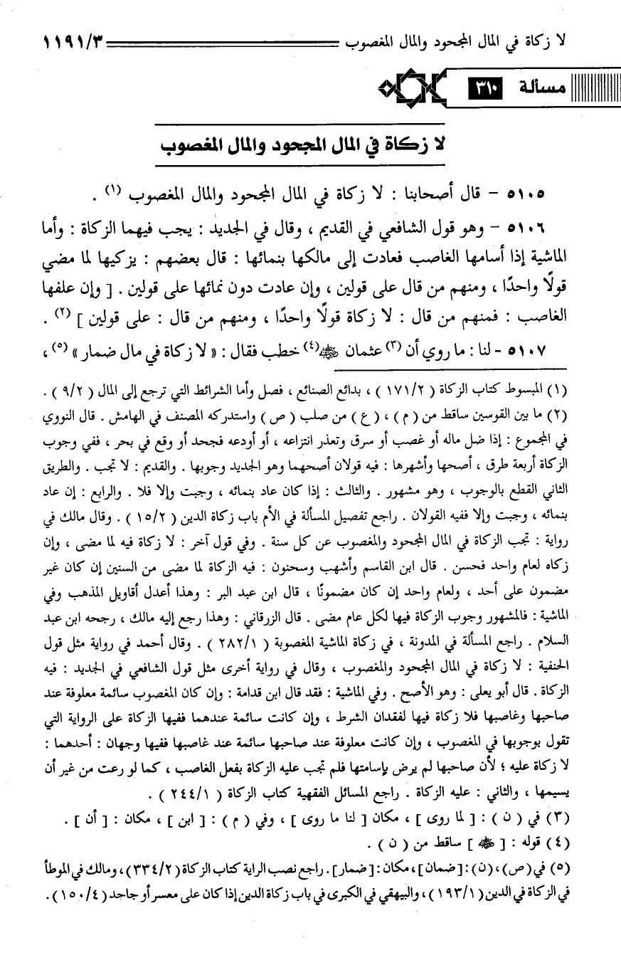 5105 - قال أصحابنا: لا زكاة في المال المجحود والمال المغصوب.