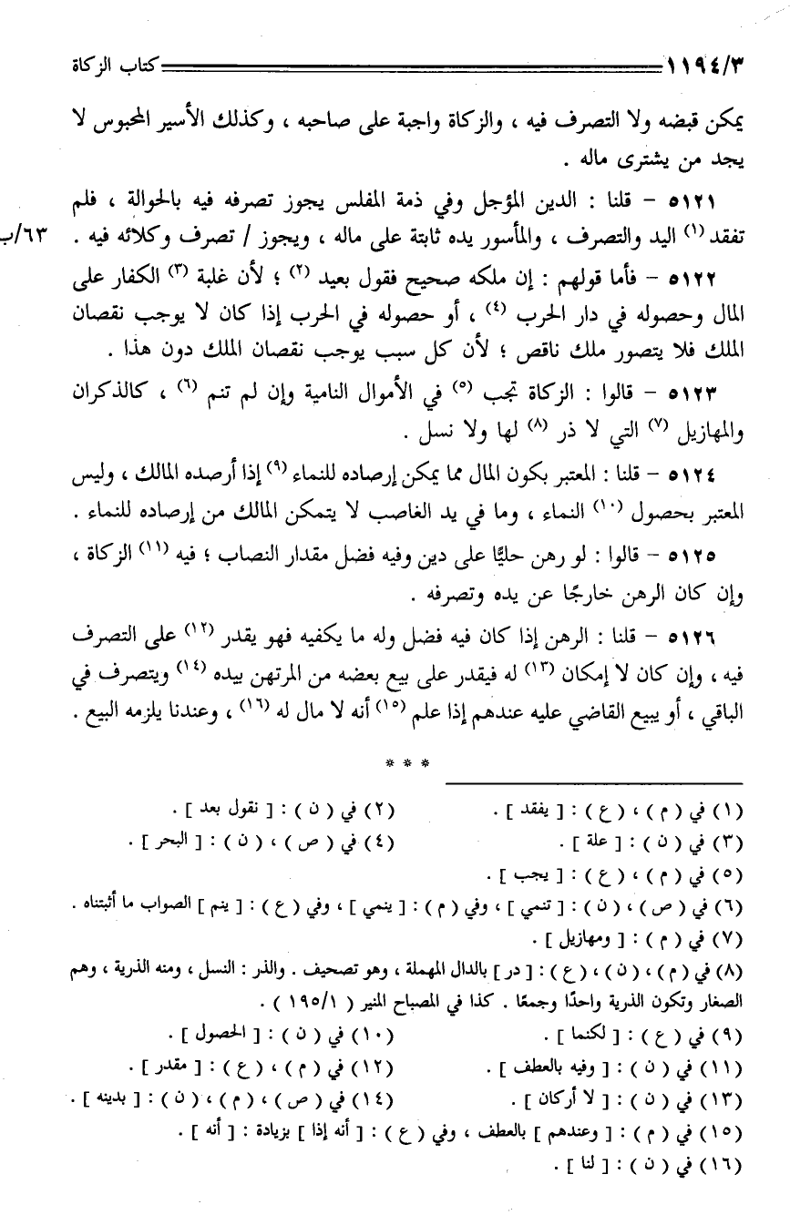 5126 - قلنا: الرهن إذا كان فيه فضل وله ما يكفيه فهو يقدر على التصرف فيه، وإن كان لا إمكان له فيقدر على بيع بعضه من المرتهن بيده ويتصرف في الباقي، أو يبيع القاضي عليه عندهم إذا علم أنه لا مال له، وعندنا يلزمه البيع.