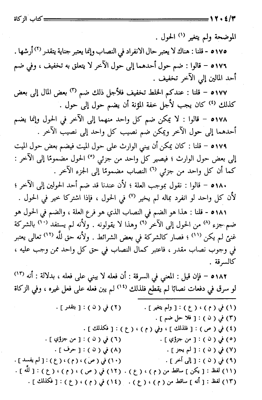 5177 - قلنا: عندكم الخلط تخفيف فلأجل ذلك ضم بعض المال إلى بعض كذلك كان يجب لأجل خفة المؤنة أن يضم حول إلى حول.