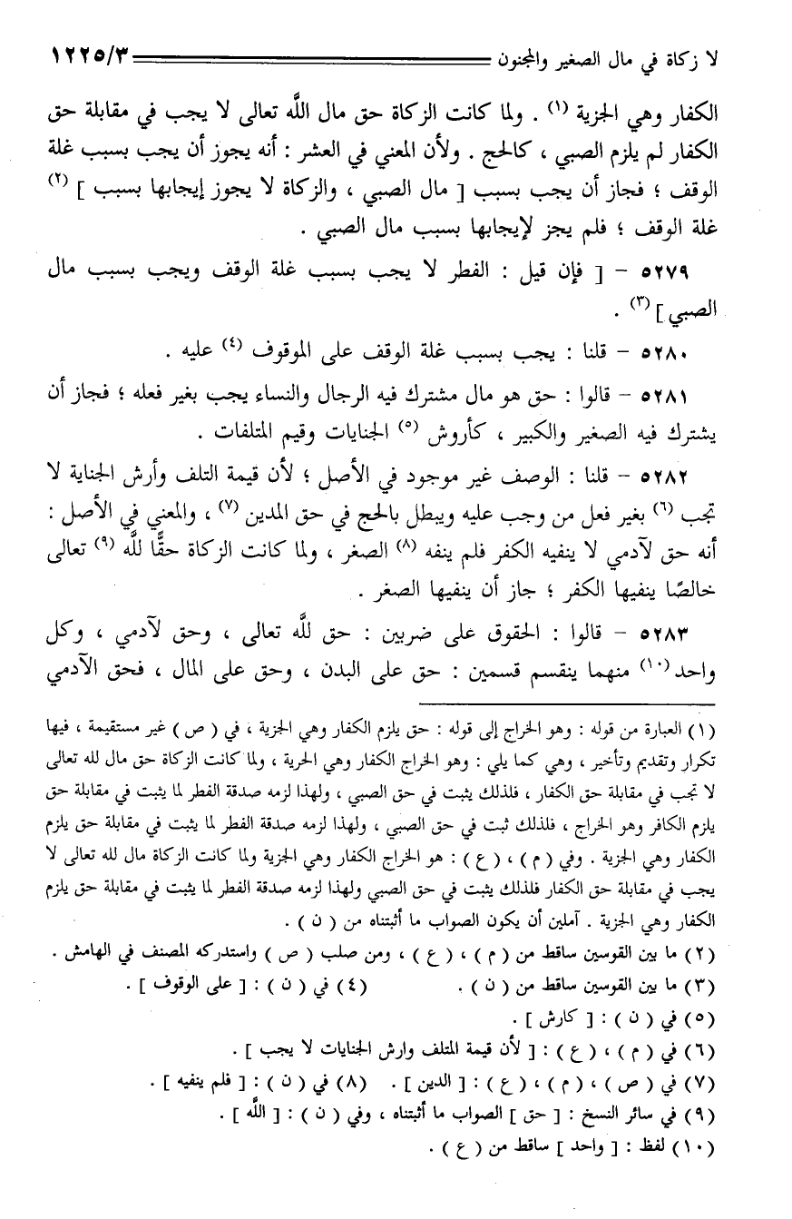 5279 - [فإن قيل: الفطر لا يجب بسبب غلة الوقف ويجب بسبب مال الصبي].