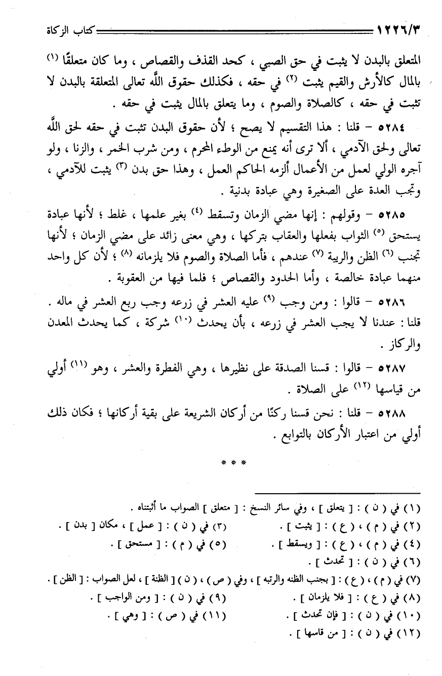 5287 - قالوا: قسنا الصدقة على نظيرها، وهي الفطرة والعشر، وهو أولى من قياسها على الصلاة.