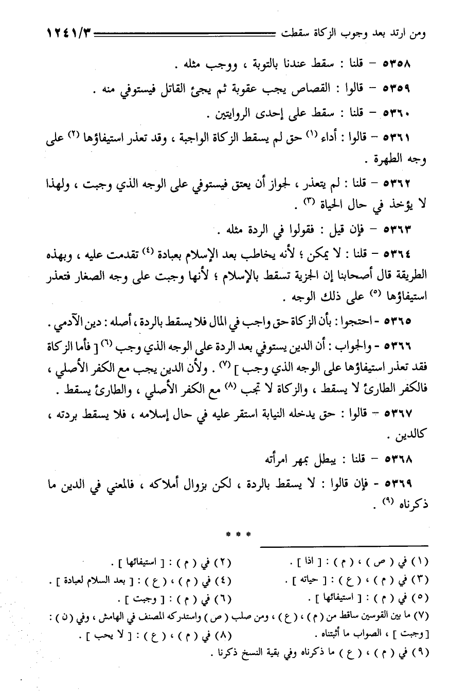 5365 - احتجوا: بأن الزكاة حق واجب في المال فلا يسقط بالردة، أصله: دين الآدمي.
