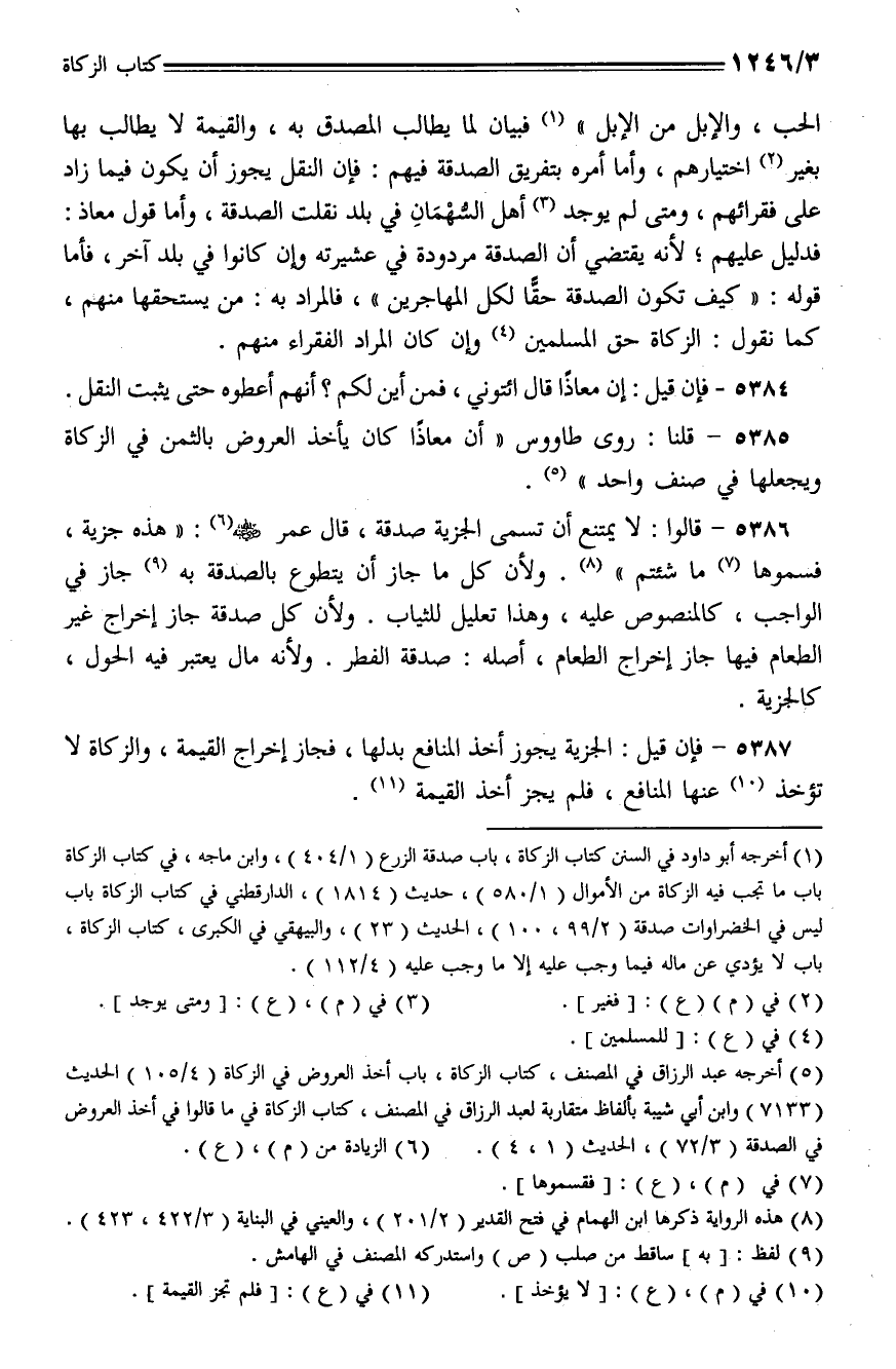 5386 - قالوا: لا يمتنع أن تسمى الجزية صدقة، قال عمر - رضي الله عنه -: (هذه جزية، فسموها ما شئتم) ولأن كل ما جاز أن يتطوع بالصدقة به جاز الواجب، كالمنصوص عليه، وهذا تعليل للثياب. ولأن كل صدقة جاز إخراج غير الطعام فيها جاز إخراج الطعام، أصله: صدقة الفطر. ولأنه مال يعتبر في الحول، كالجزية.