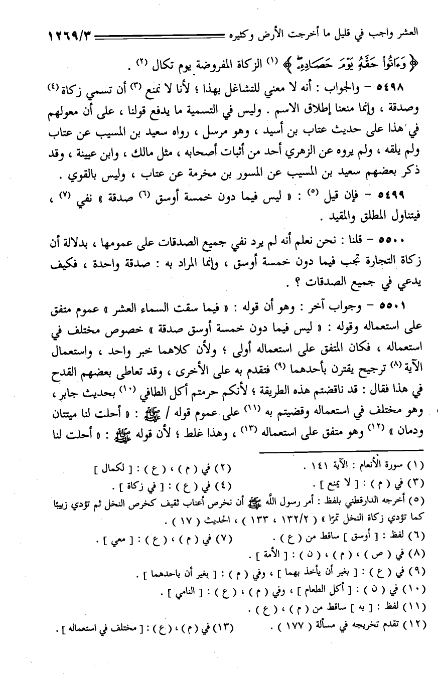 5499 - فإن قيل: (ليس فيما دون خمسة أوسق صدقة) نفي، فيتناول المطلق والمقيد.