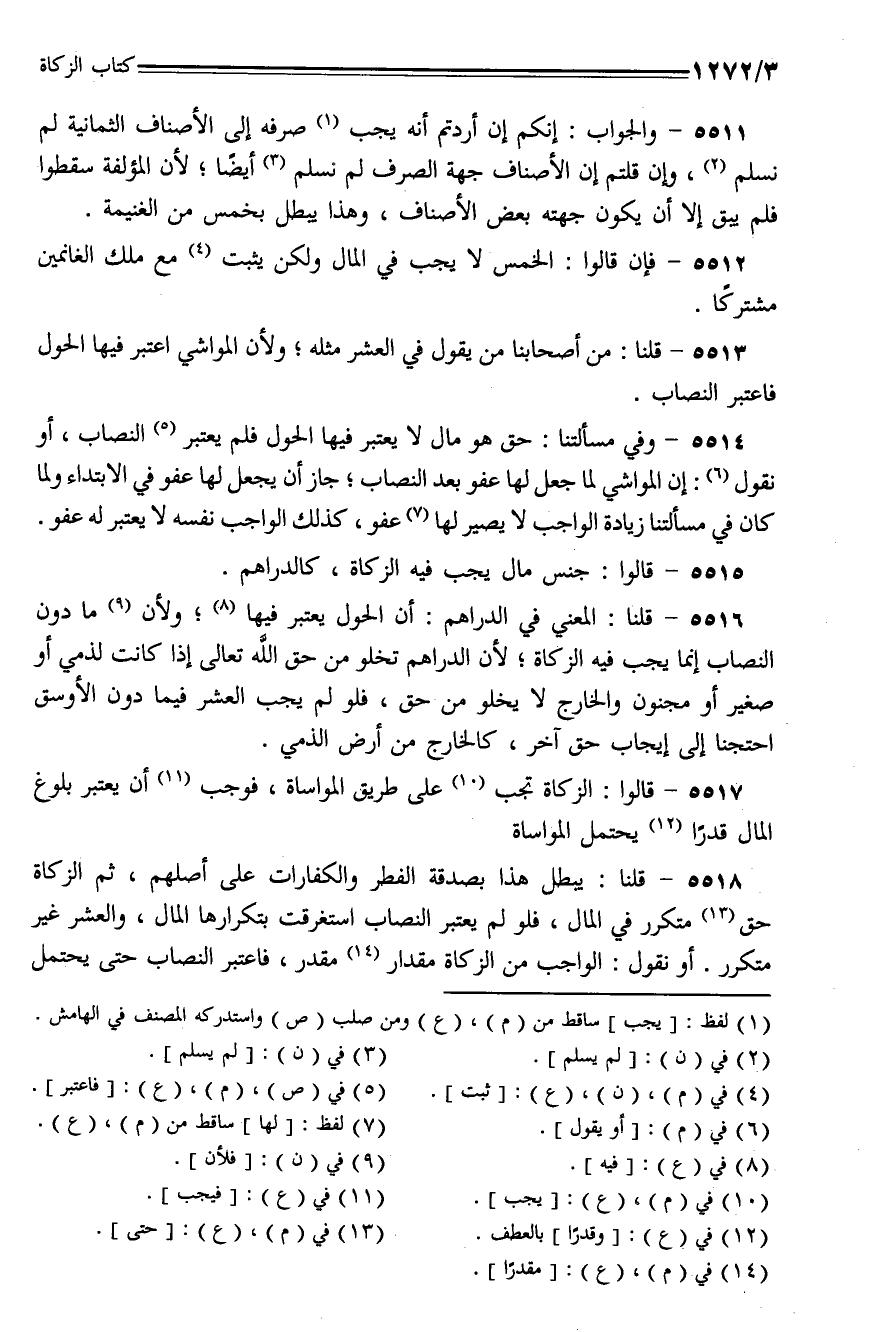 5518 - قلنا: يبطل هذا بصدقة الفطر والكفارات على أصلهم، ثم الزكاة حق متكرر في المال، فلو لم يعتبر النصاب استغرقت بتكرارها المال، والعشر غير متكرر. أو نقول: الواجب من الزكاة مقدار مقدر، فاعتبر النصاب حتى يحتمل