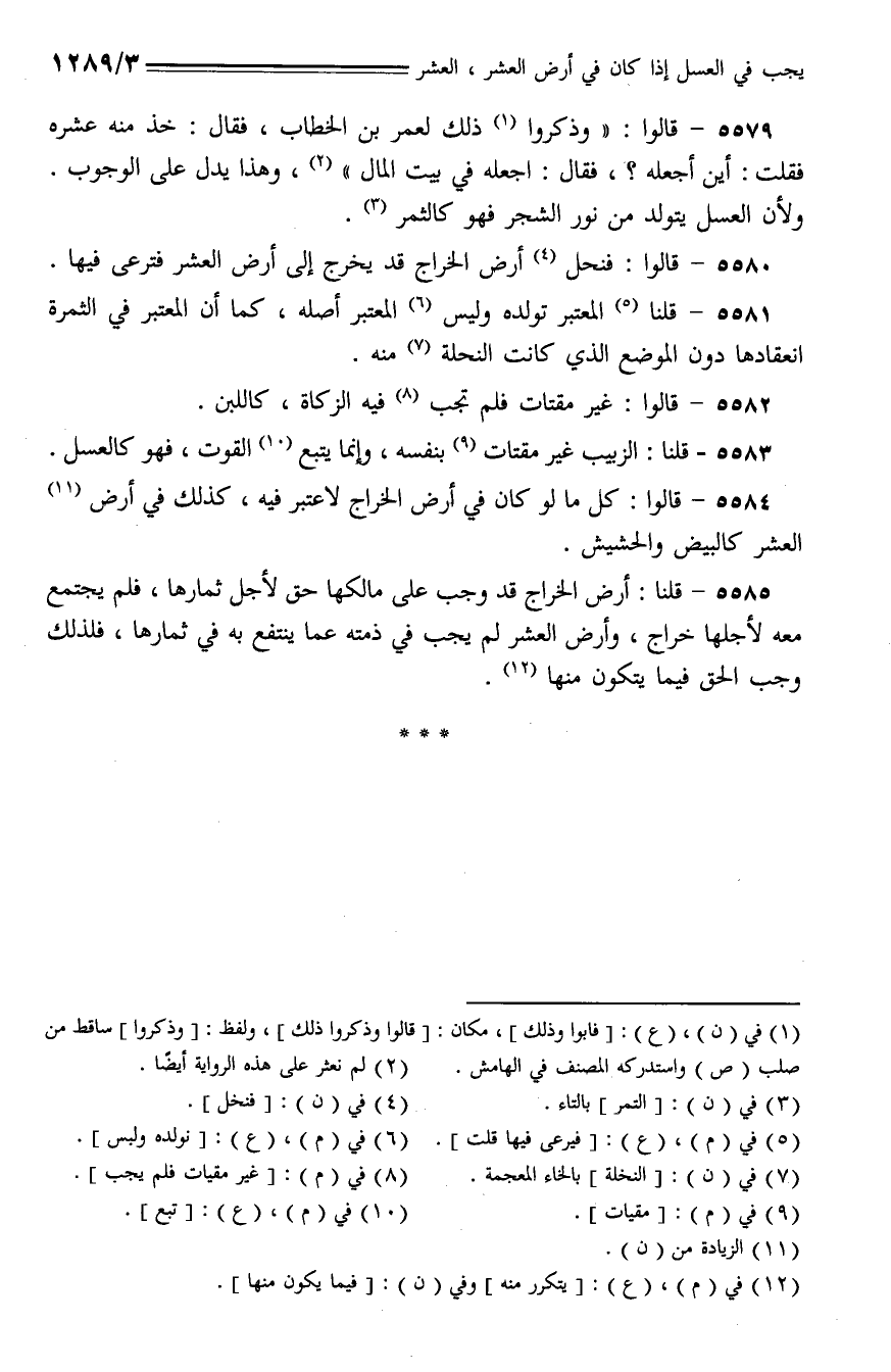 5580 - قالوا: فنحل أرض الخراج قد يخرج إلى أرض العشر فترعى فيها.