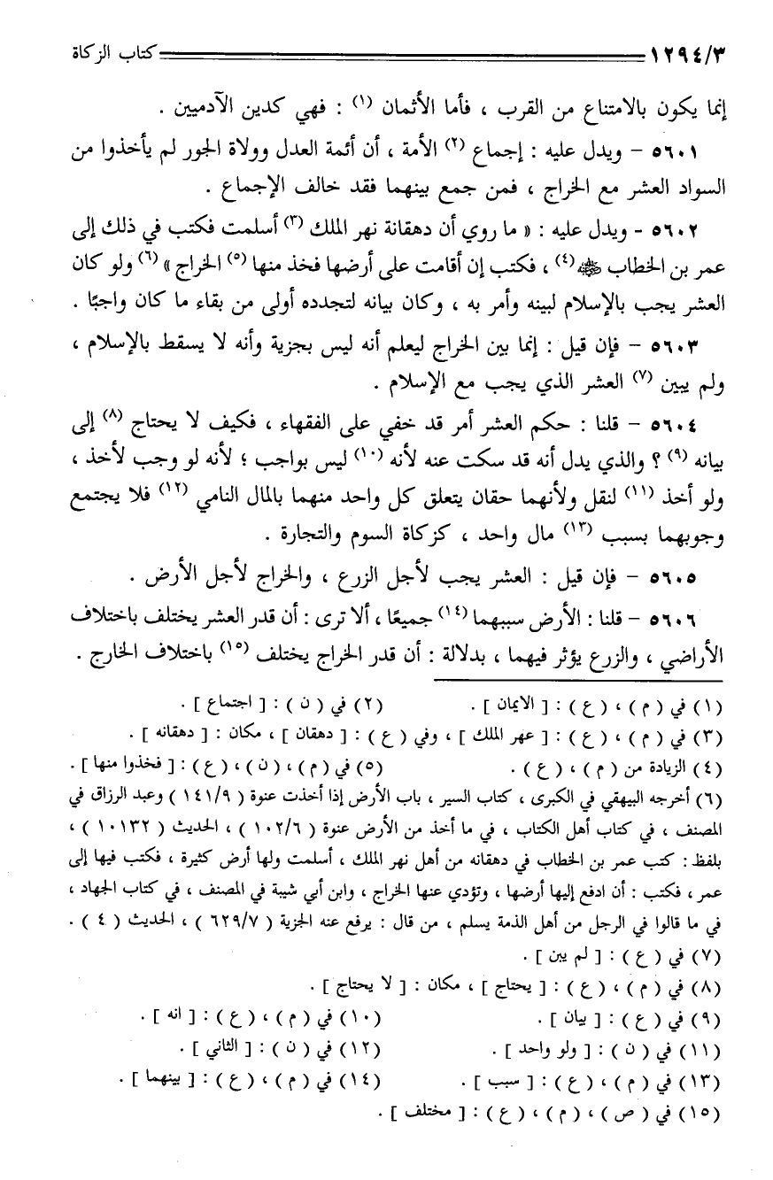 5601 - ويدل عليه: إجماع الأمة، أن أئمة العدل وولاة الجور لم يأخذوا من السواد العشر مع الخراج، فمن جمع بينهما فقد خالف الإجماع.