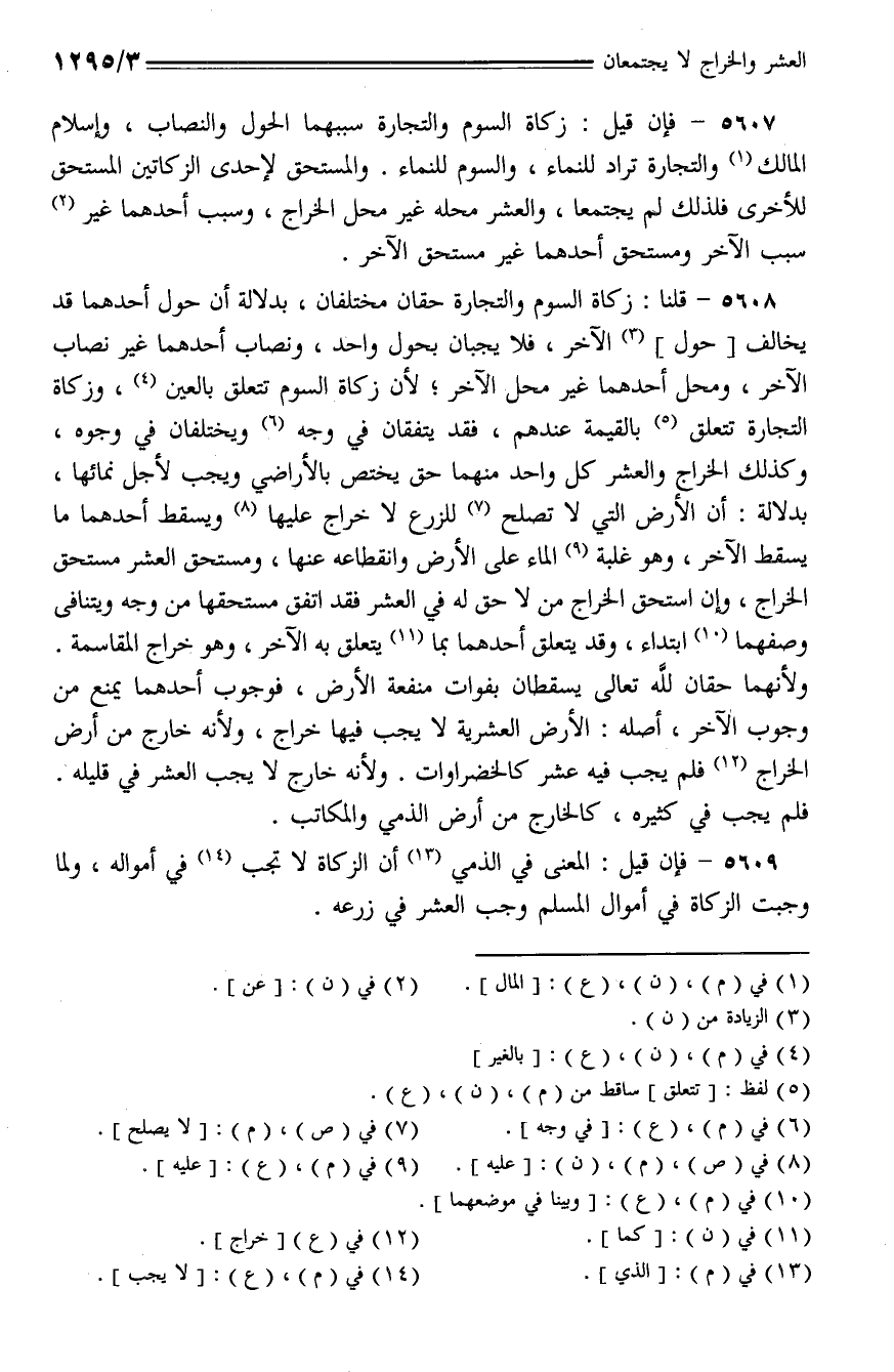 5607 - فإن قيل: زكاة السوم والتجارة سببهما الحول والنصاب، وإسلام المالك والتجارة تراد للنماء، والسوم للنماء. والمستحق لإحدى الزكاتين المستحق للأخرى فلذلك لم يجتمعا، والعشر محله غير محل الخراج، وسبب أحدهما غير سبب الآخر ومستحق أحدهما غير مستحق الآخر.