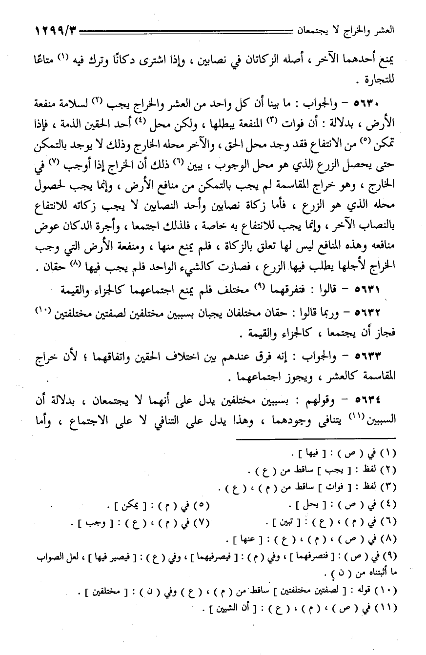 5633 - والجواب: إنه فرق عندهم بين اختلاف الحقين واتفاقهما؛ لأن خراج المقاسمة كالعشر، ويجوز اجتماعها.