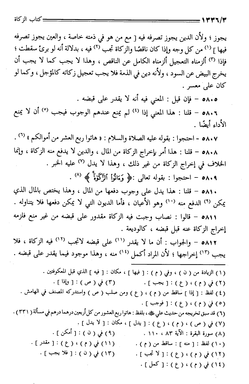 5811 - قالوا: نصاب وجبت فيه الزكاة مقدور على قبضه من غير منع فلزمه إخراج الزكاة عنه قبل قبضه، كالوديعة.