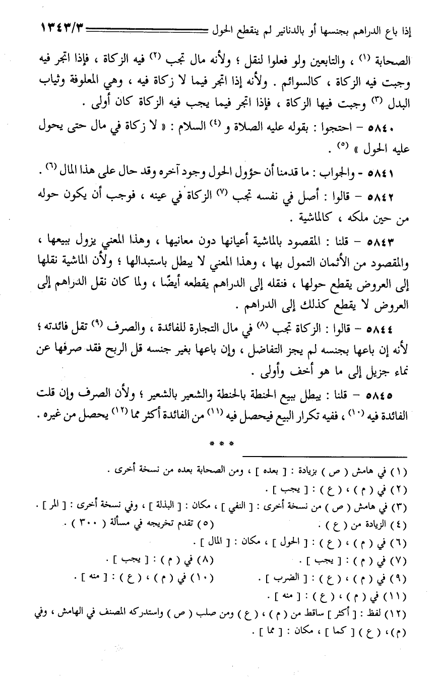 5841 - والجواب: ما قدمنا أن حؤول الحول وجود آخره وقد حال على هذا المال.
