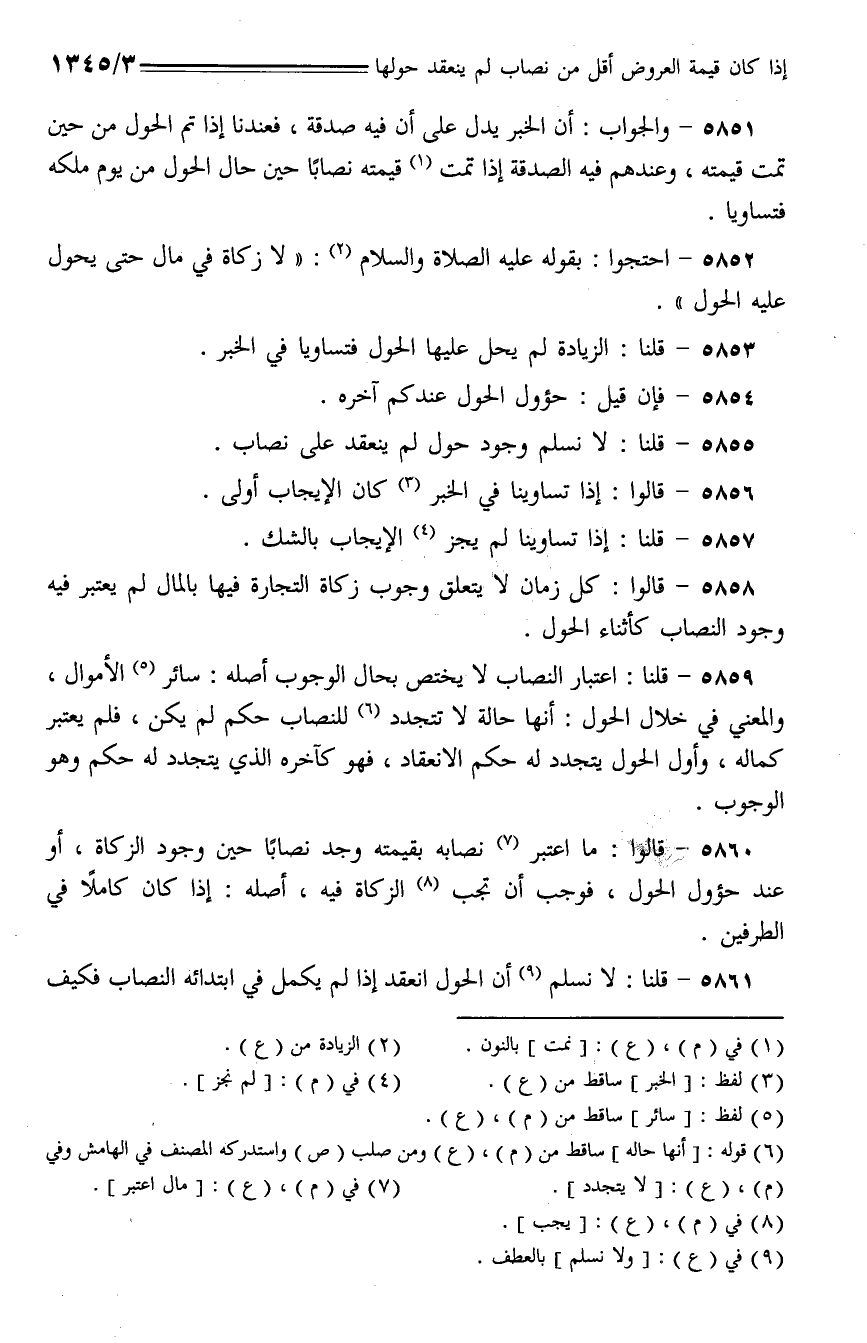 5855 - قلنا: لا نسلم وجود حول لم ينعقد على نصاب.