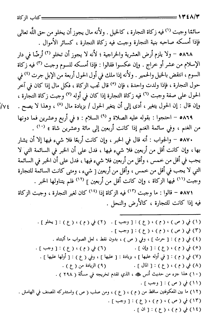 5871 - قالوا: ما وجبت فيه الزكاة إذا كان لغير التجارة، وجبت الزكاة فيه إذا كانت للتجارة، كالأرض والنحل.