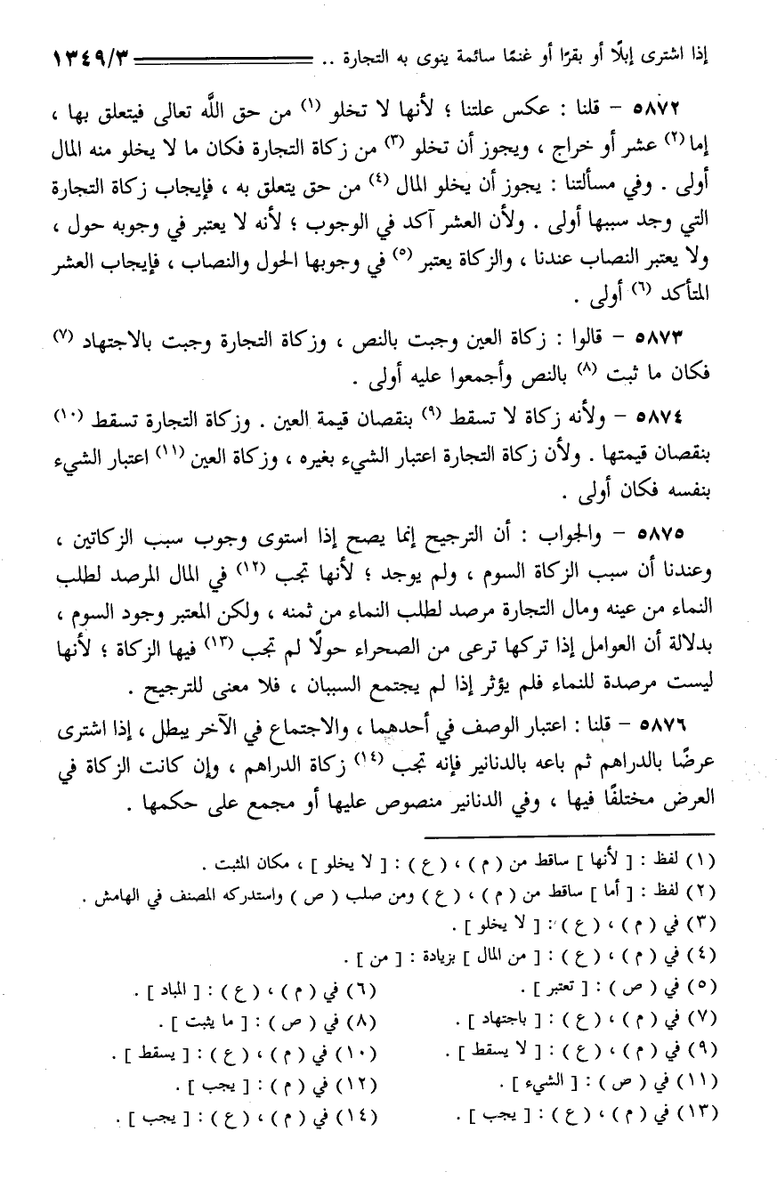 5876 - قلنا: اعتبار الوصف في أحدهما، والاجتماع في الآخر يبطل، إذا اشترى عرضا بالدراهم ثم باعه بالدنانير فإنه تجب زكاة الدرهم، وإن كانت الزكاة في العرض مختلفا فيها، وفي الدنانير منصوص عليها أو مجمع على حكمها.