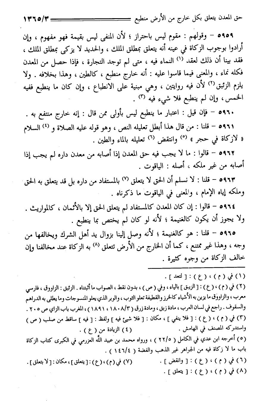 5964 - قالوا: إن كان المعدن كالمستفاد لم يتعلق الحق إلا بالأثمان، كالمواريث. ولا يجوز أن يكون كالغنيمة؛ لأنه لو كان لم يختص بما ينطبع.