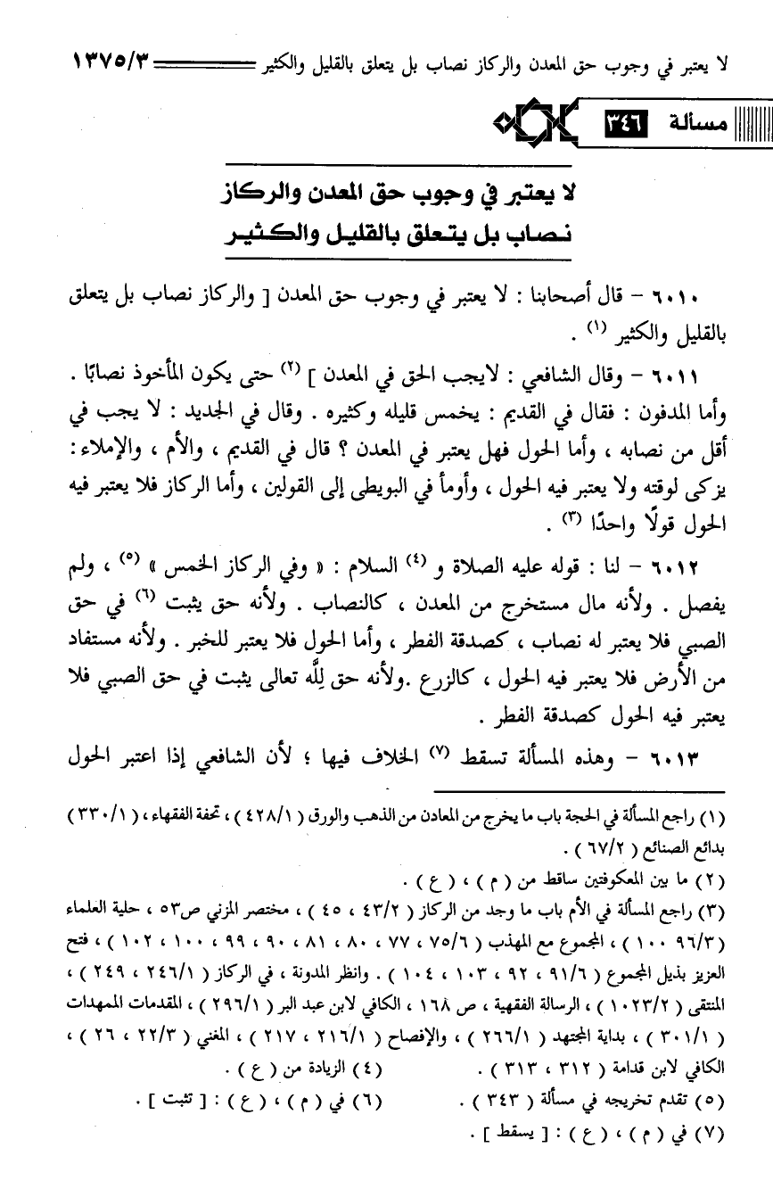 6013 - وهذه المسألة تسقط الخلاف فيها؛ لأن الشافعي إذا اعتبر الحول