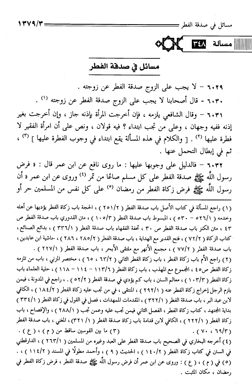 6030 - قال أصحابنا لا يجب على الزوج صدقة الفطر عن زوجته.