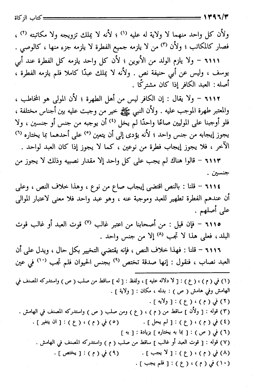 6114 - قلنا: بالنص اقتضى إيجاب صاع من نوع, وهذا خلاف النص, وعلى أن عندهم الفطرة تطهير للعبد وموجبة عنه, وهو عبد واحد فلا معنى لاعتبار الموالي على أصلهم.