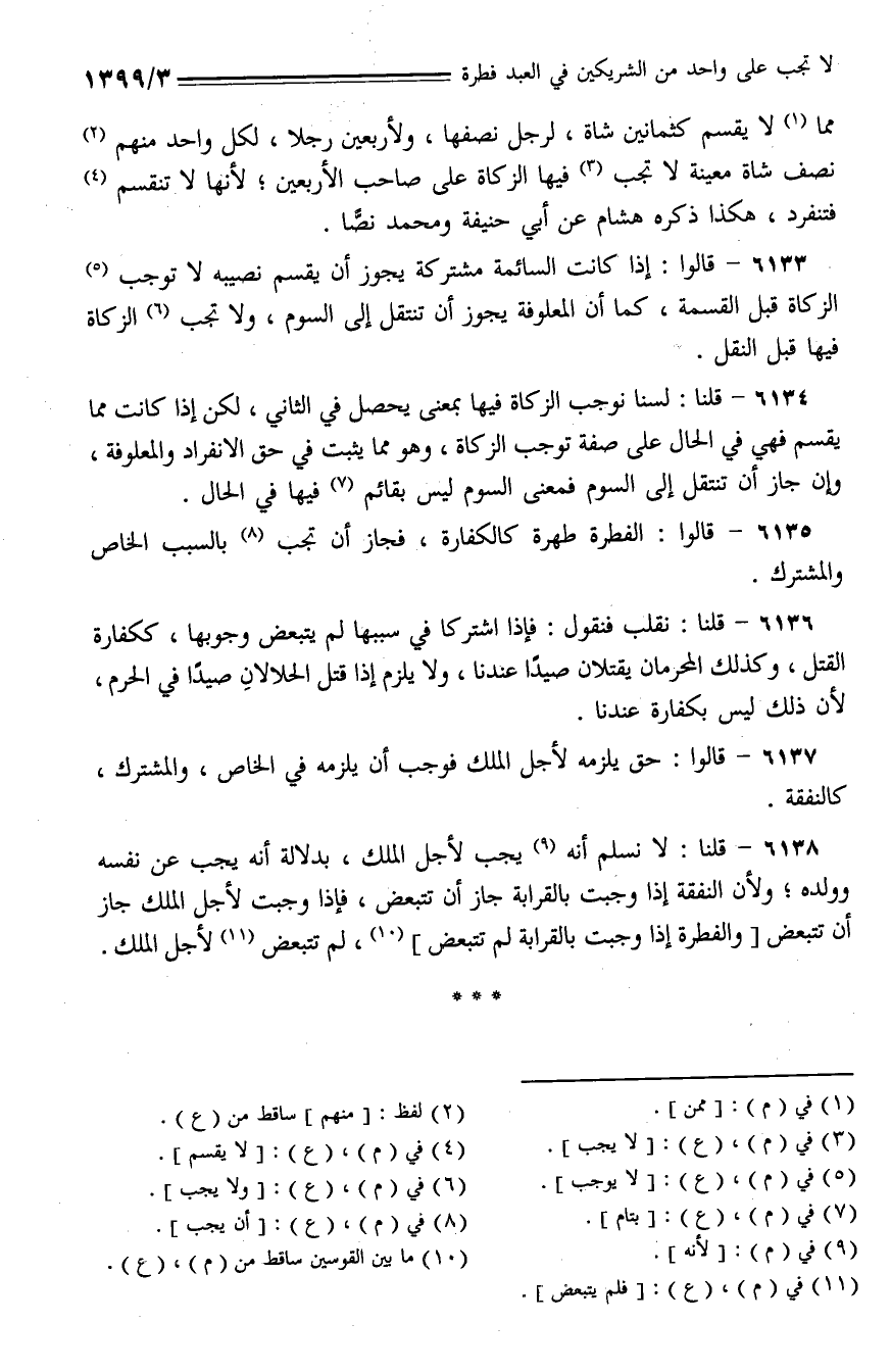 6133 - قالوا: إذا كانت السائمة مشتركة يجوز أن يقسم نصيبه لا توجب الزكاة قبل القسمة, كما أن المعلوفة يجوز أن تنتقل إلى السوم, ولا تجب الزكاة فيها قبل النقل.