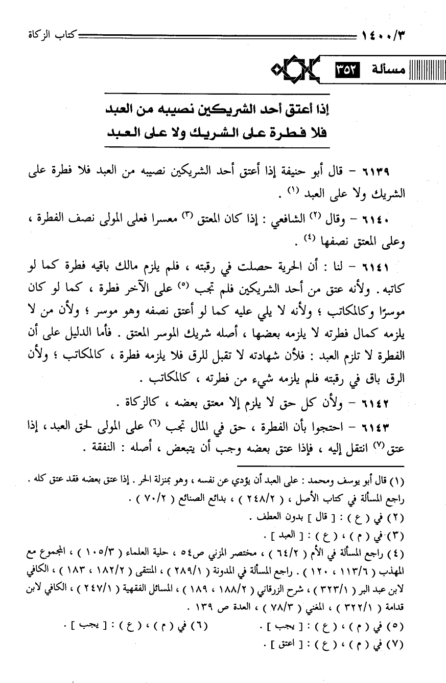 6139 - قال أبو حنيفة إذا أعتق أحد الشريكين نصيبه من العبد فلا فطرة على الشريك ولا على العبد.
